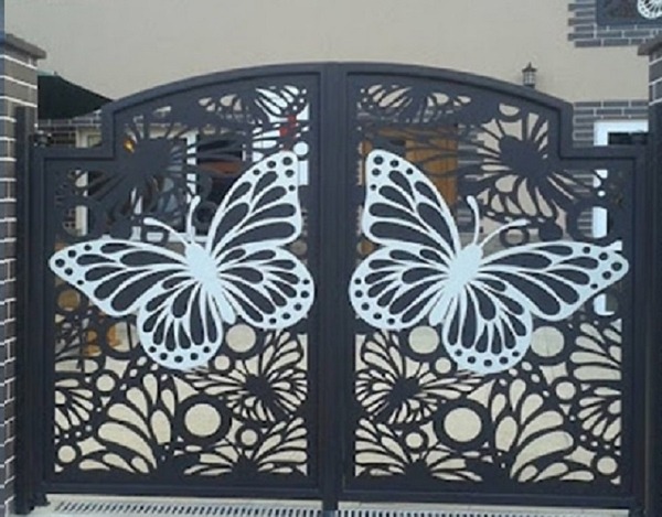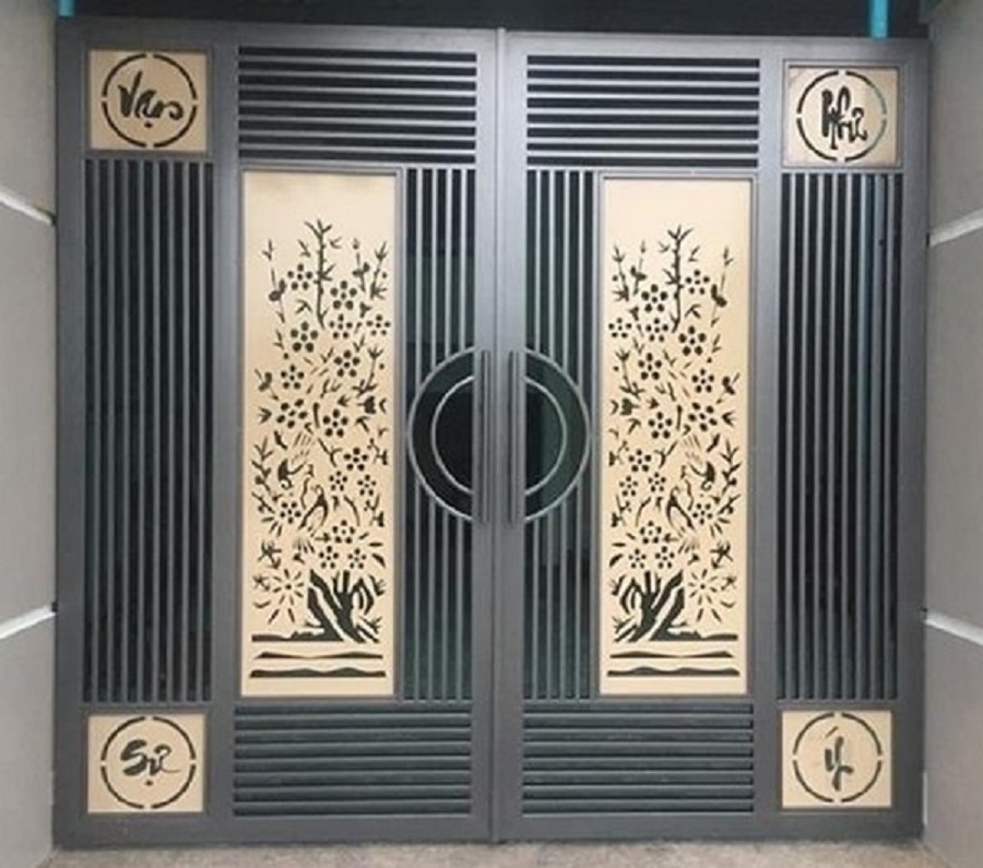 - Kiểu dáng: Khung sắt hộp với họa tiết hoa văn CNC ở phần giữa hoặc trên đầu cổng.
