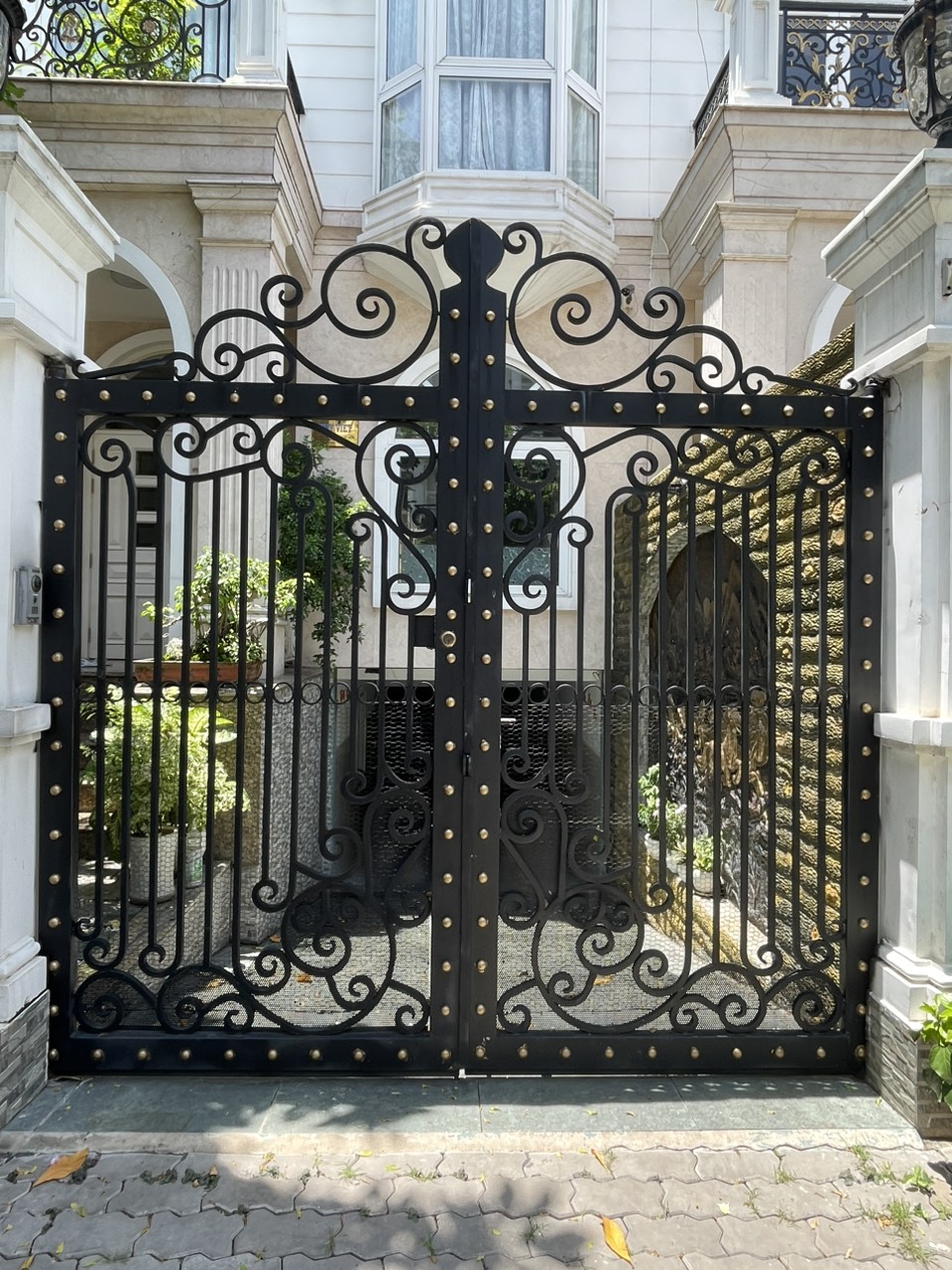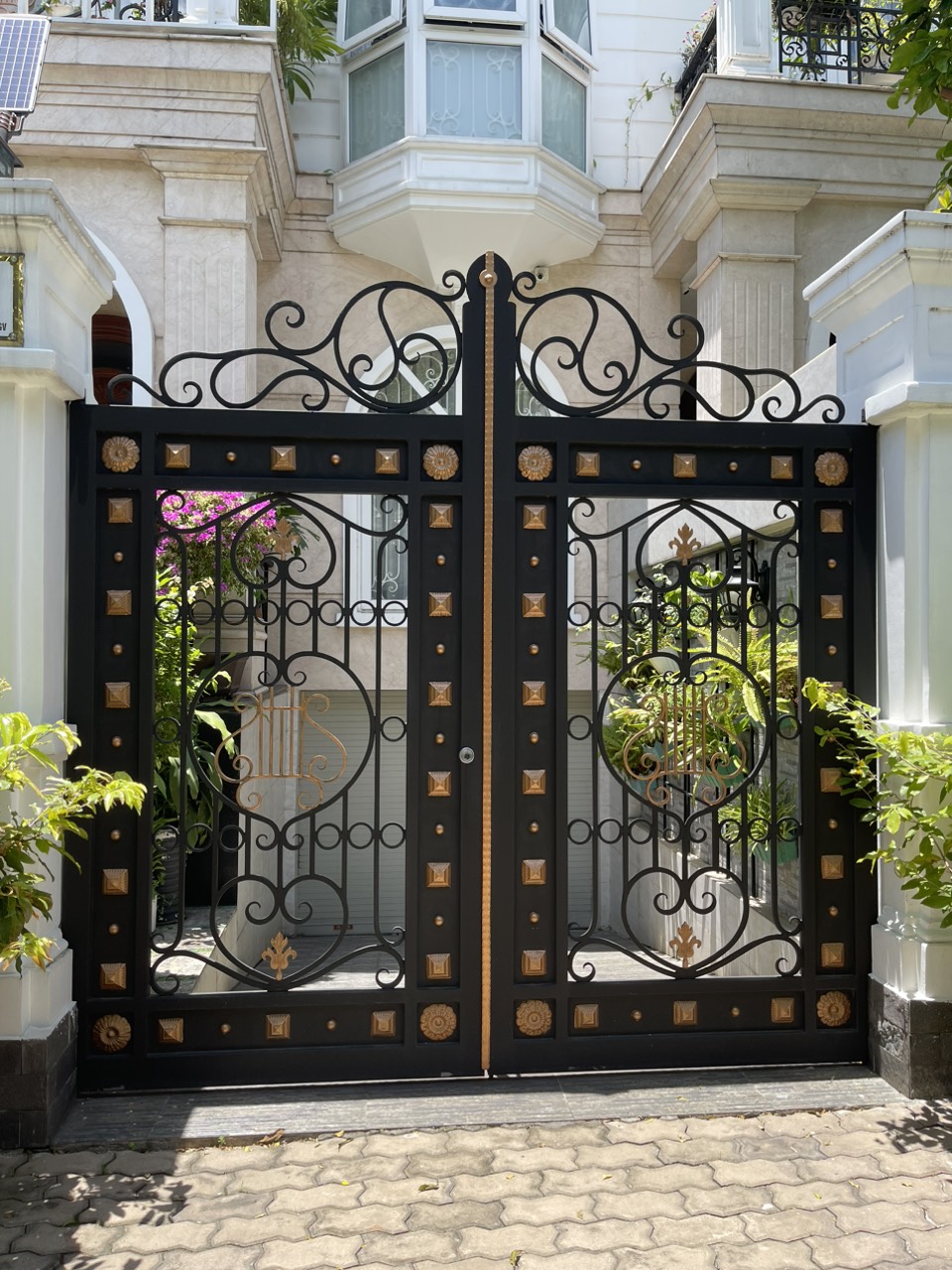 Cổng sắt hộp 2 cánh rất phù hợp với nhà mặt tiền nhỏ hẹp, giúp tiết kiệm diện tích và đảm bảo sự cân đối trong thiết kế. - Biệt thự, nhà vườn: