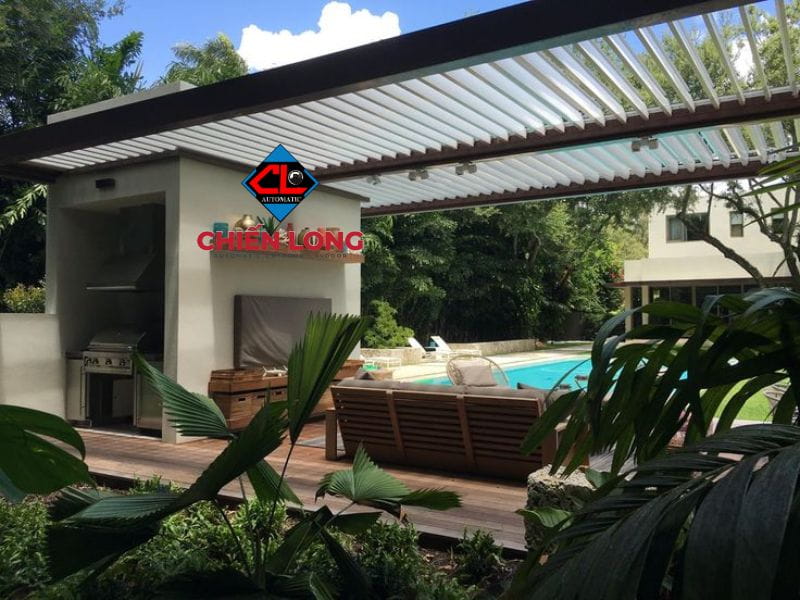 Tìm hiểu báo giá giàn che nắng mái nhôm chớp tự động