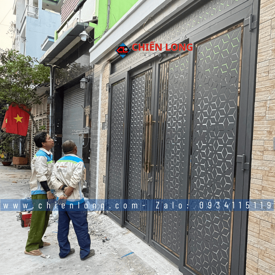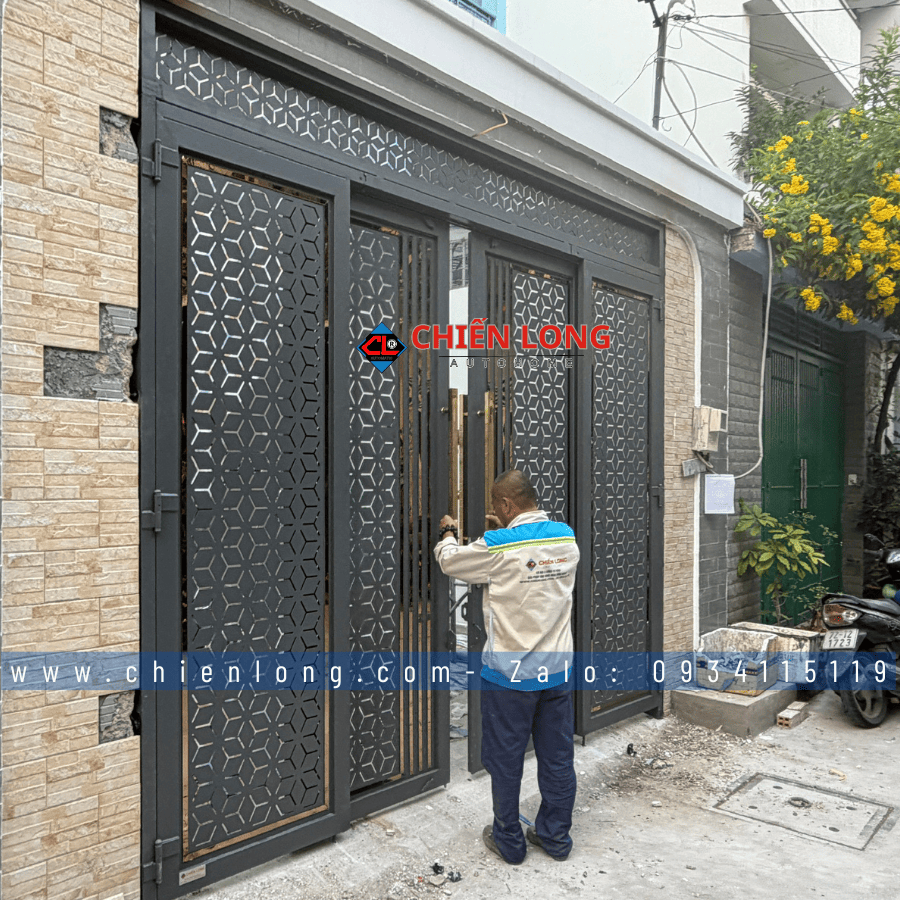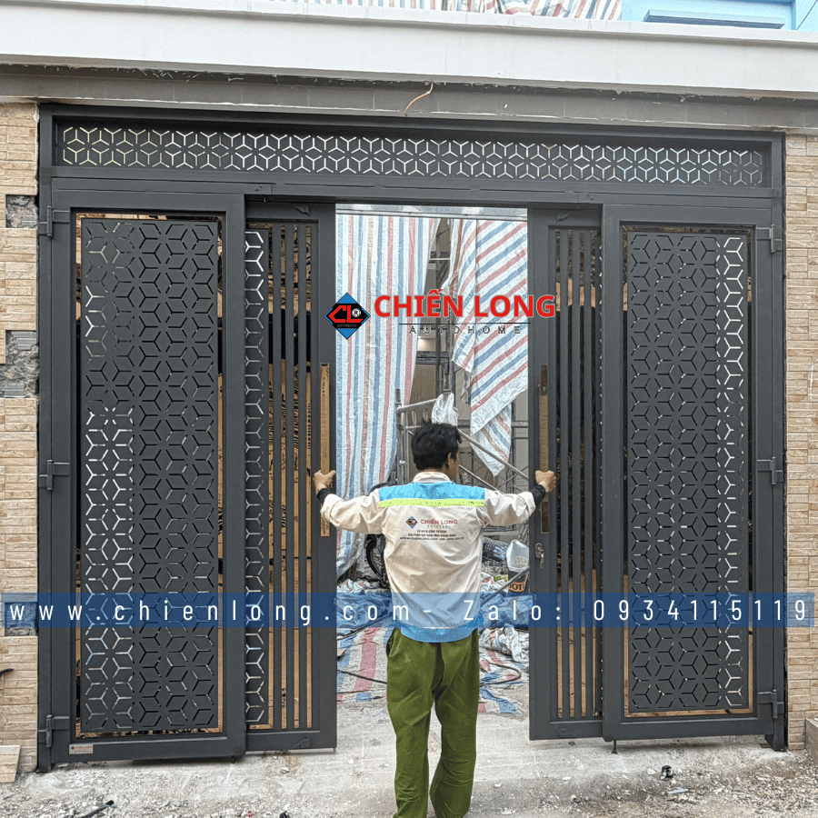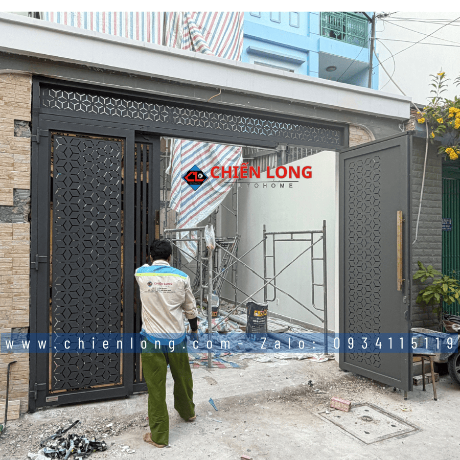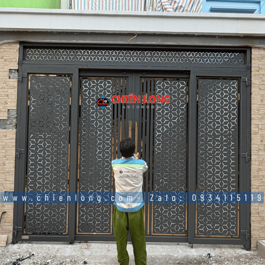 rong xu hướng kiến trúc hiện đại 2026, cửa trượt quay CNC hoa văn hình học tổ ong hiệu ứng 3D đang trở thành lựa chọn hàng đầu cho nhà phố và biệt thự nhờ khả năng kết hợp hoàn hảo giữa thẩm mỹ – công năng – độ bền. Mới đây, Chiến Long Autohome đã hoàn tất bàn giao bộ cửa trượt quay CNC cho khách hàng tại Bình Tân, với thiết kế phá cách, sơn tĩnh điện cao cấp và kích thước chuẩn xác ngang 3080mm x cao 3050mm.