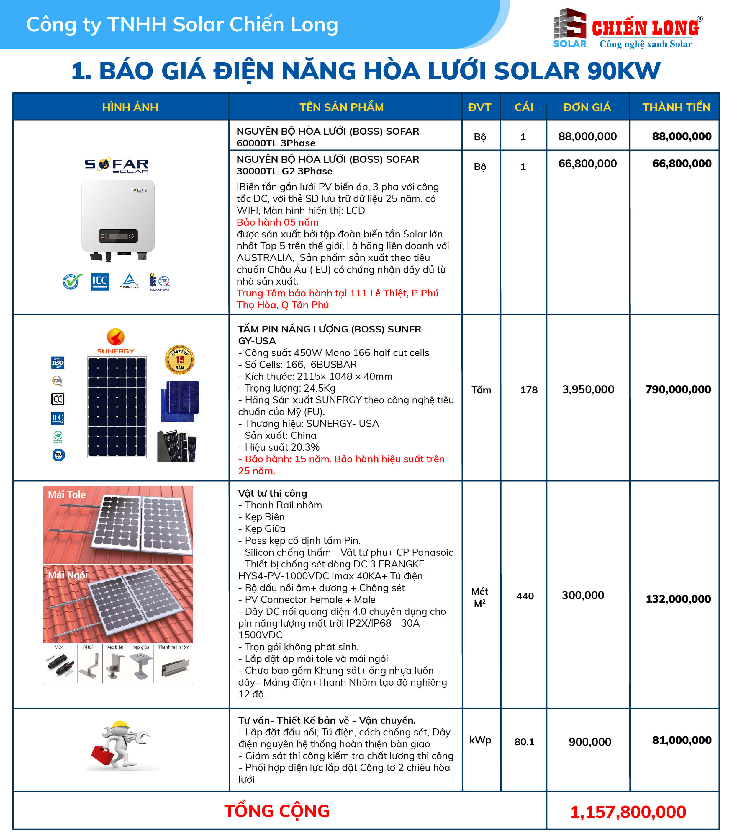 1.BÁO GIÁ ĐIỆN NĂNG LƯỢNG MẶT TRỜI 90KW