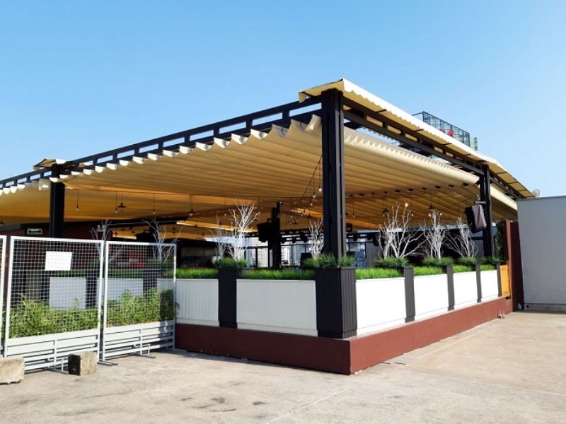 Báo giá lắp đặt bạt mái xếp lượn sóng tự động ngoài trời giá tốt, thi công nhanh, bền bỉ