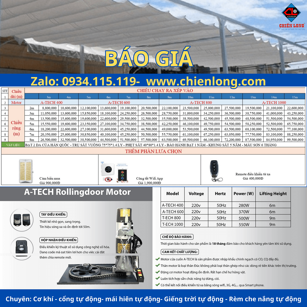 Yếu tố quyết định báo giá lắp đặt bạt lượn sóng tự động ngoài trời Chiến Long