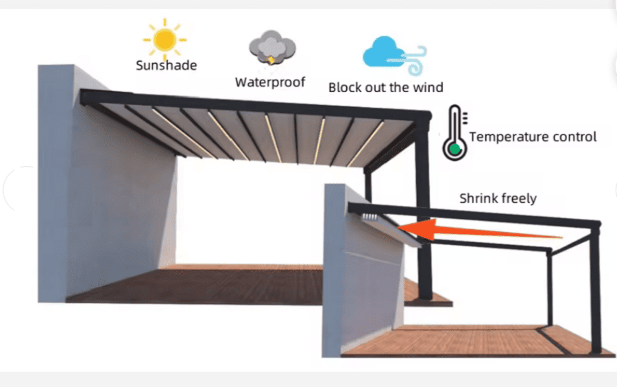 Loại mái phù hợp: Pergola PVC, mái xếp lật, mái xếp ly, mái che nhôm…