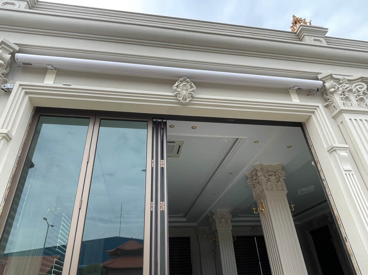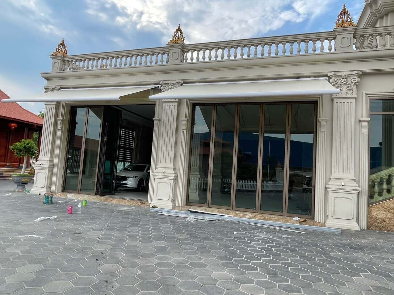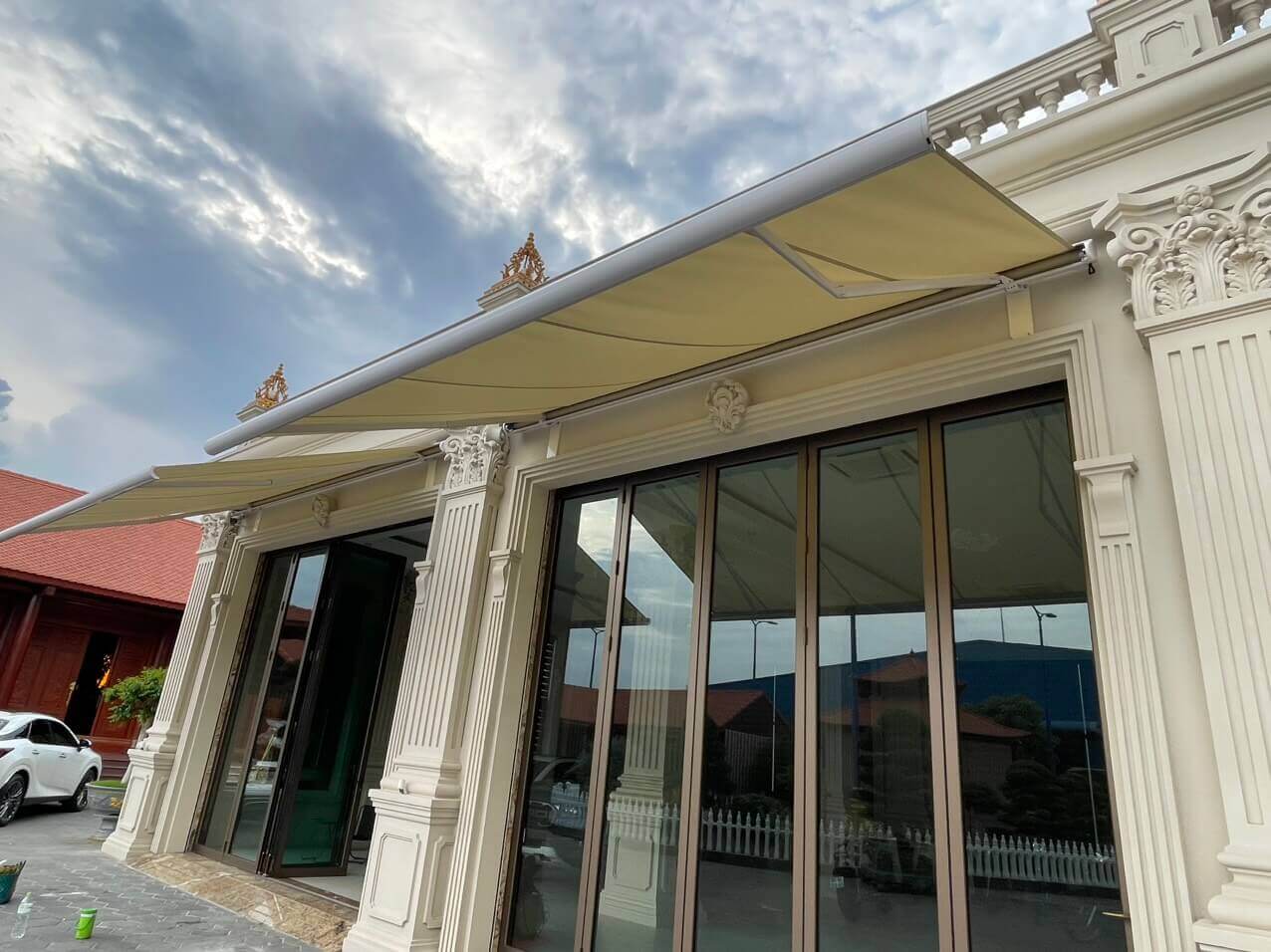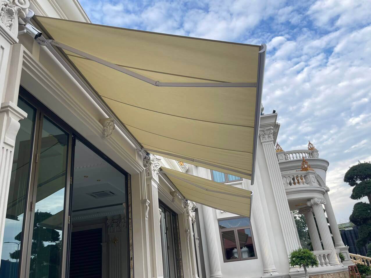 Công trình Lắp đặt 2 bộ Mái hiên tự động được Chiến Long thực hiện tại Siêu biệt thự của công ty Hoàng Huy Phát tại Biên Hòa Đồng Nai. Công ty có yêu cầu về một hệ thống mái hiên chất lượng đặc biệt che nắng tốt, tuổi thọ cao, vận hành trơn tru, hiện đại.