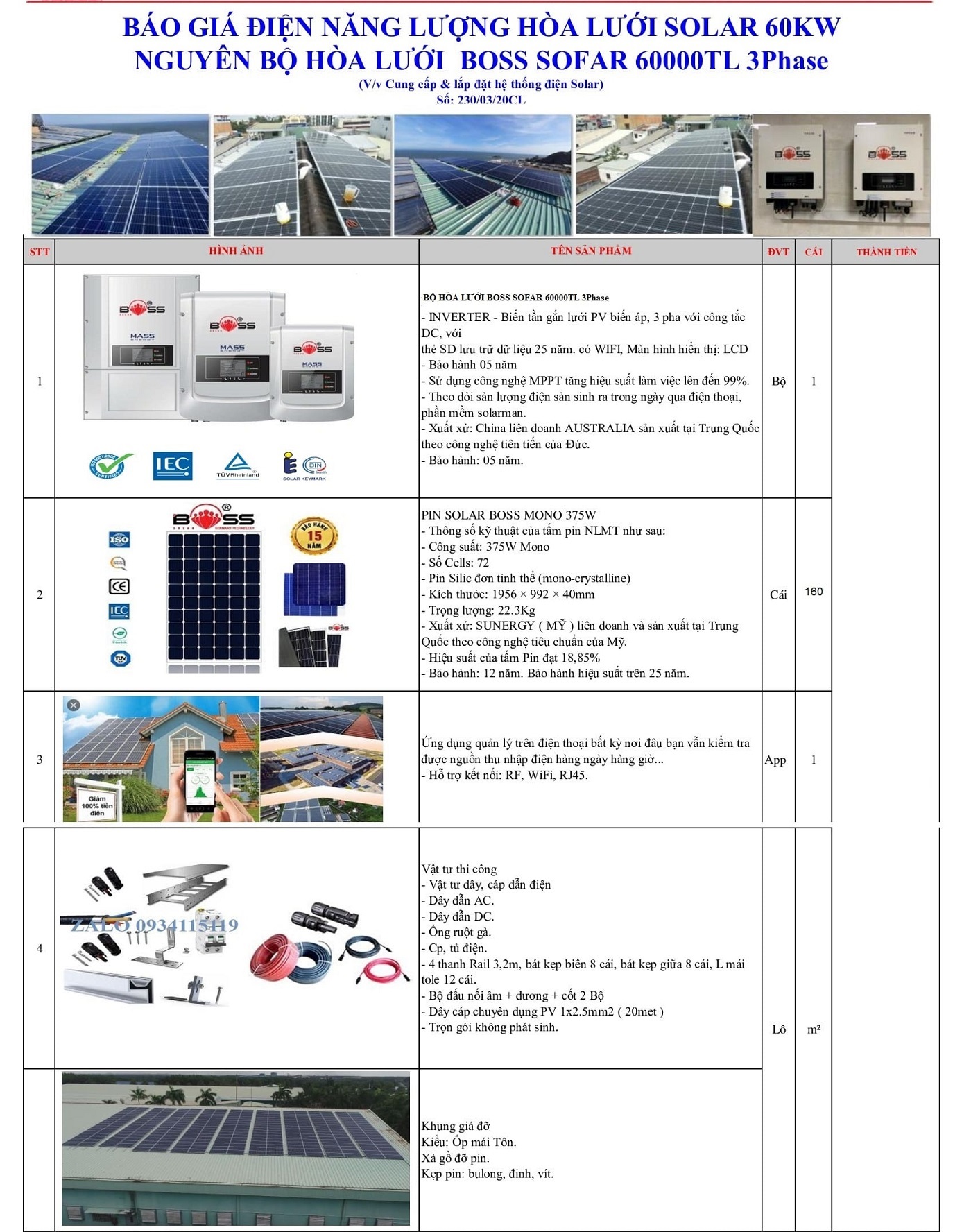 - Trên đây là báo giá cung cấp và thi công hệ thống điện năng lượng mặt trời hóa lưới ( công suất 50kw)