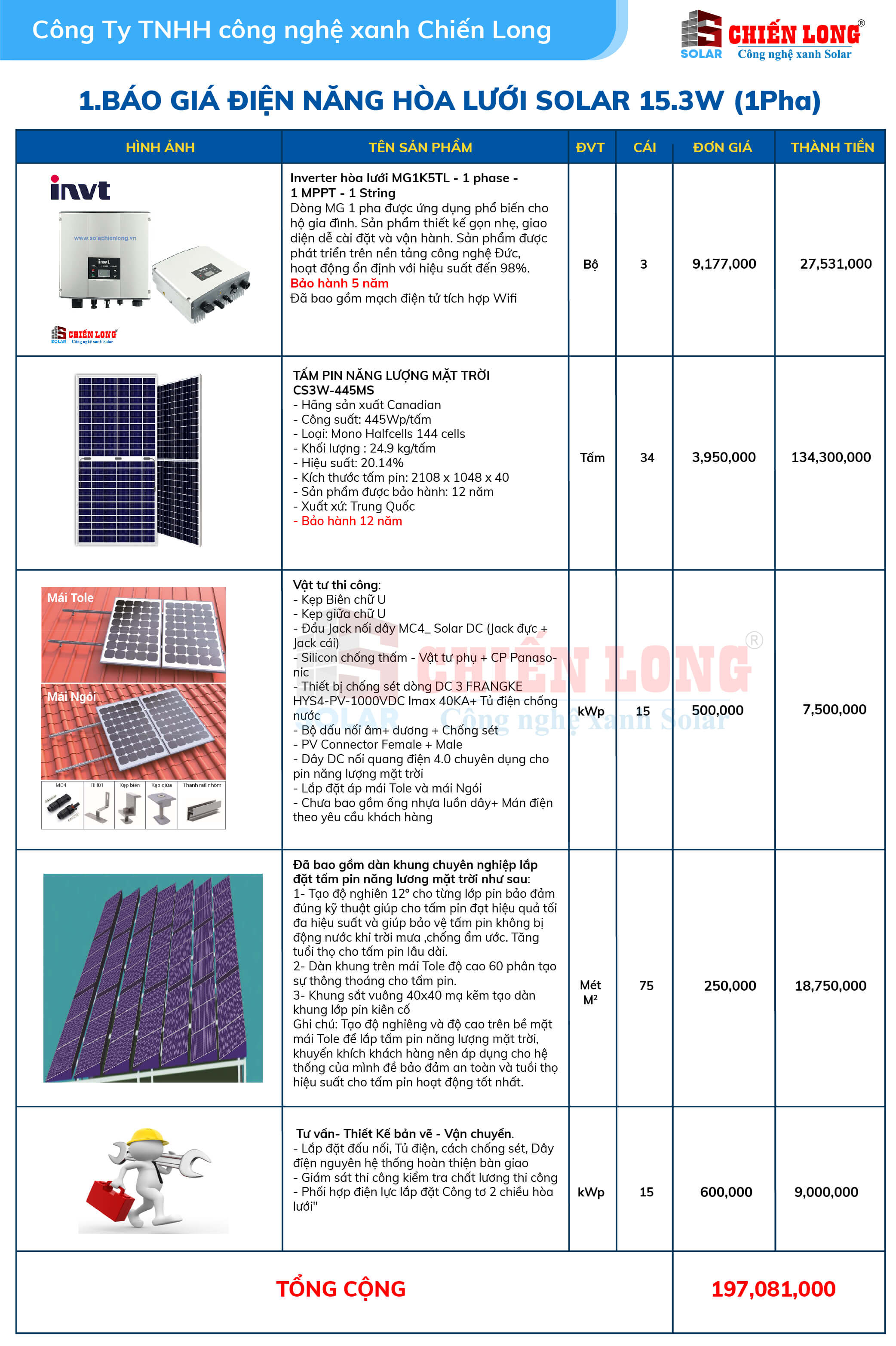 1. BÁO GIÁ ĐIỆN NĂNG LƯỢNG MẶT TRỜI 15.3KW