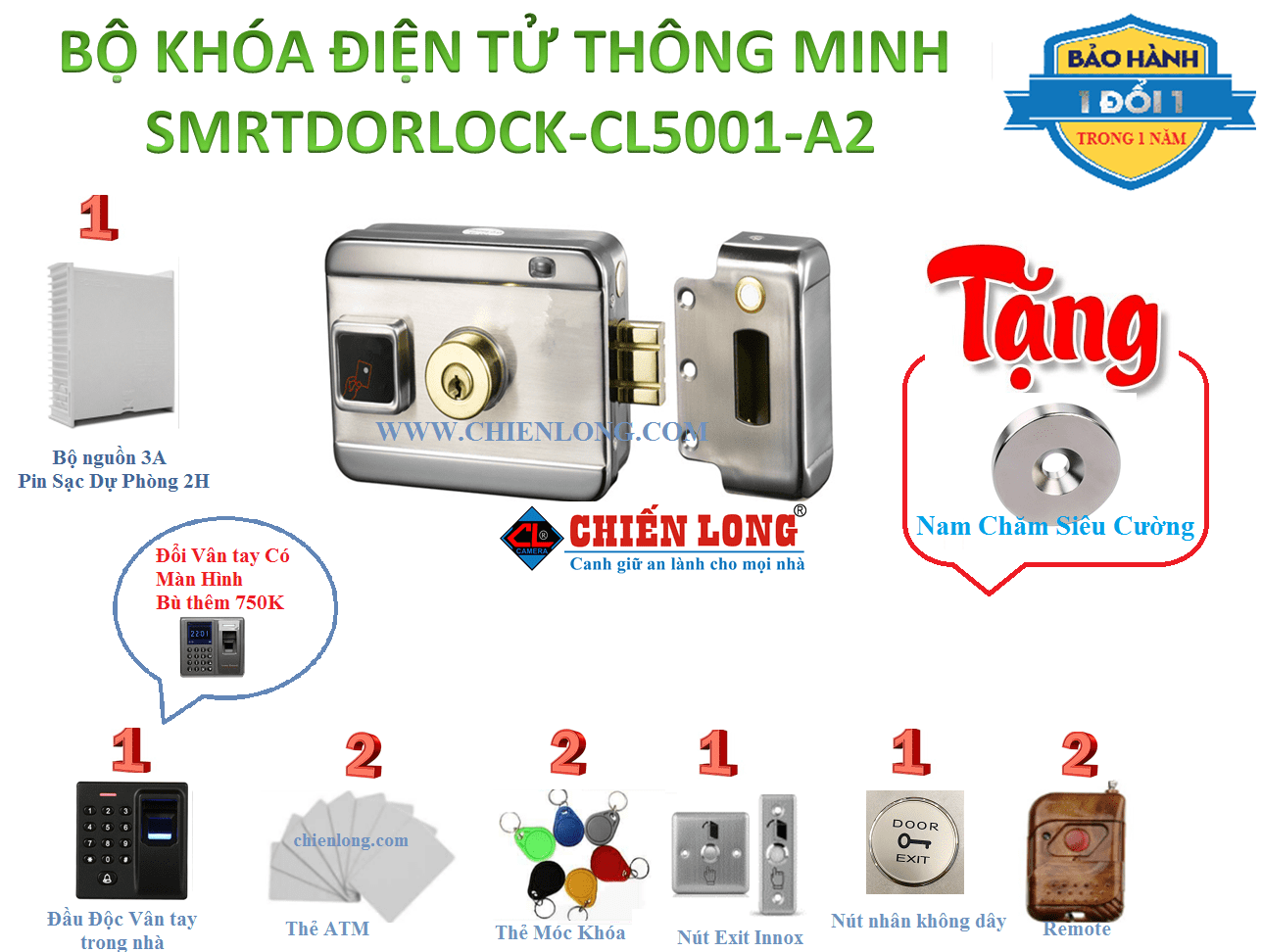 Bộ Khóa Cổng Điện Tử Thông Minh Vân tay, thẻ từ mã số Smartdorlock CL-5001-A2