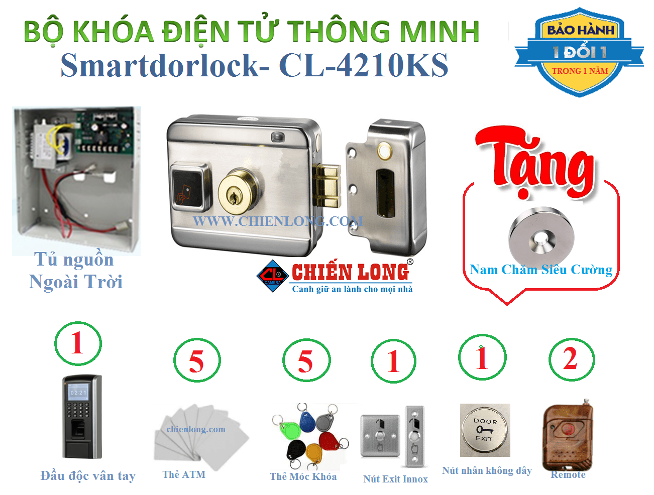 BỘ KHÓA CỔNG ĐIỆN TỬ VÂN TAY KIỂM SOÁT RA VÀO CHẤM CÔNG Smartdorlock CL-4210KS