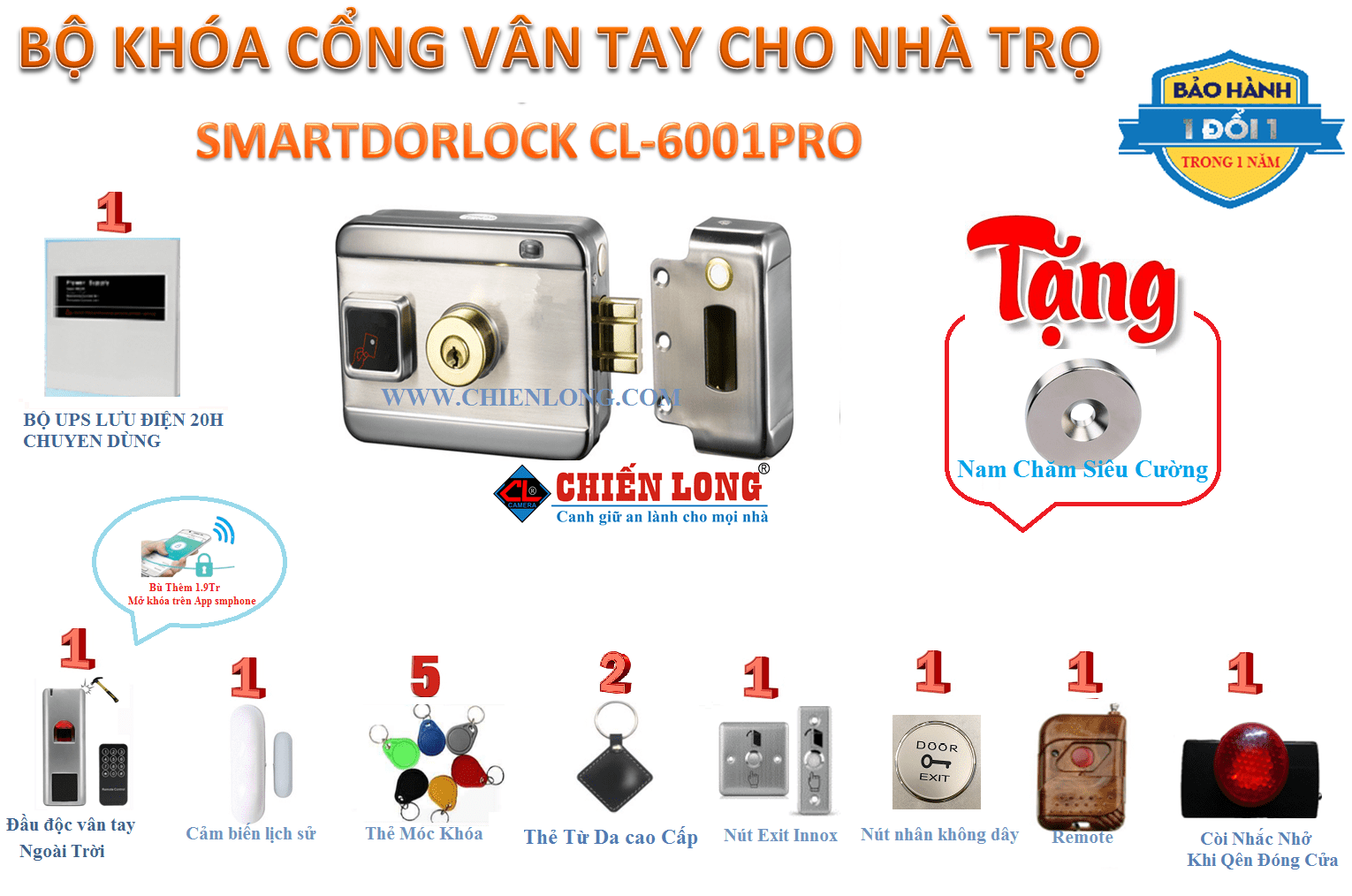 Bộ Khóa Cổng vân tay chống trộm Cho Nhà Trọ Smartdorlock CL-6001PRO