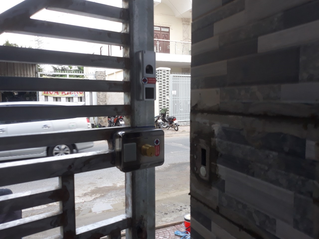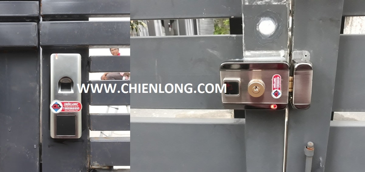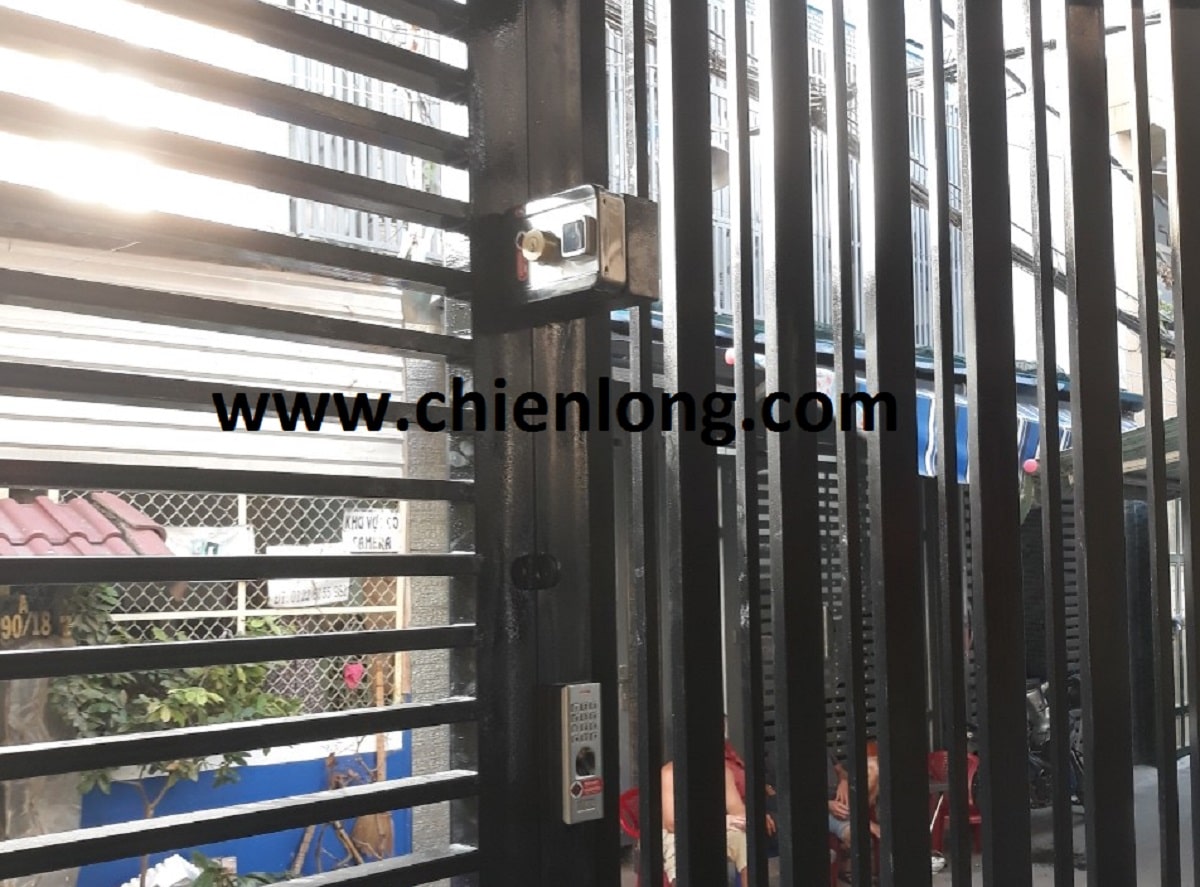 Khóa cửa vân tay lắp đặt trên cửa cổng sắt mở lùa