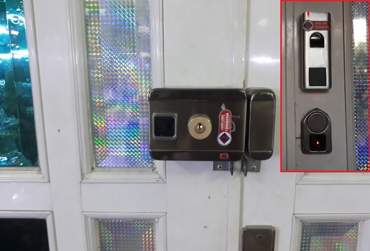 Khóa cửa vân tay lắp cho cửa Sắt khung kính vấn tay đặt bên ngoài ổ khóa đặt bên trong nhà