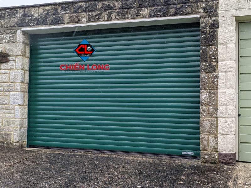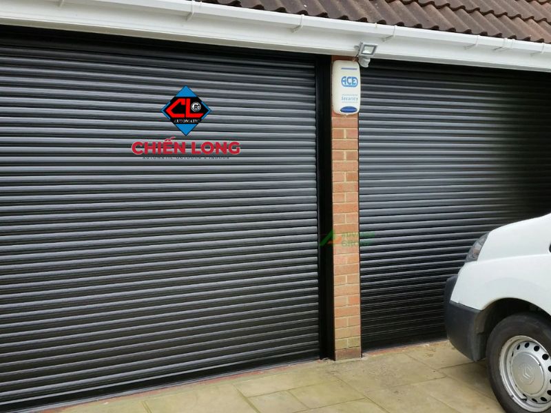 Cửa cuốn tấm liền: thân cửa được xếp hình G tiện lợi. Ngoài việc đóng mở tự động tiện lợi còn có thể vận hành bằng tay nhờ trang bị hệ thống lò xo khi mất điện.