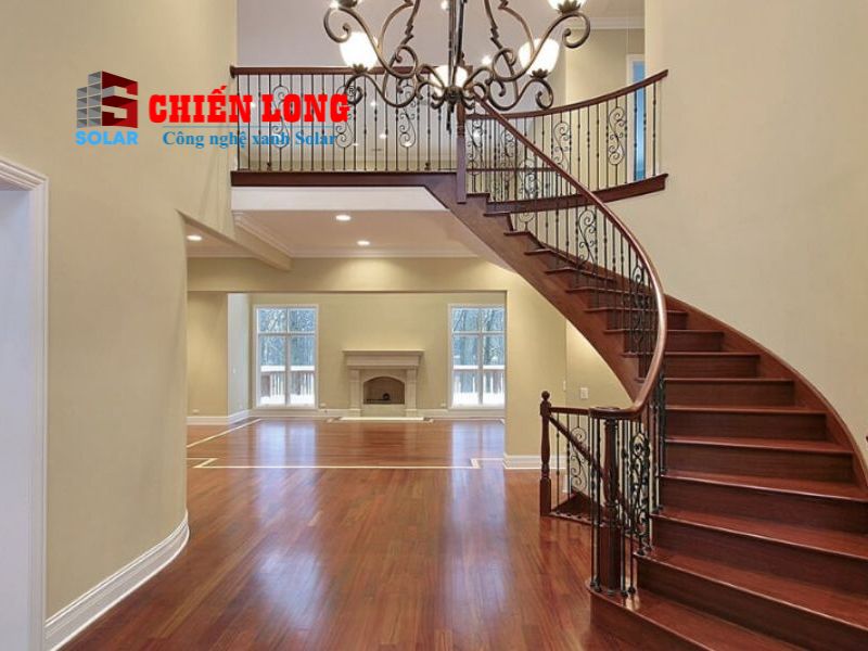 Sàn ốp nhựa giả gỗ có độ kiên cố, rắn tỏi, bề mặt có vân sần chống trượt nên người dùng hoàn toàn yên tâm khi đi trên cầu trang, ngay cả khi bề mặt cầu thang ẩm ướt.