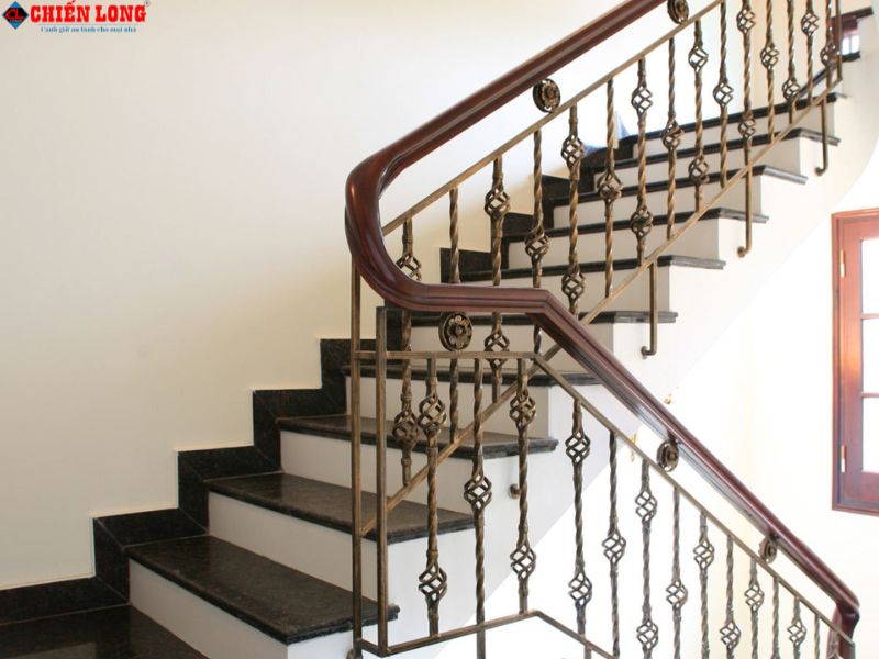 Chiến Long - chuyên cung cấp cầu thang sắt mỹ thuật tay vịn giả gỗ căm xe CL02 chất lượng