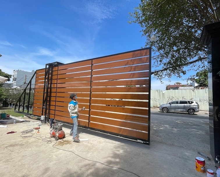 Hệ thống bánh xe và con lăn được gắn cố định dưới mặt đất. Cổng cửa hoạt động an toàn bởi đã có sự nâng đỡ từ hai cánh trụ.