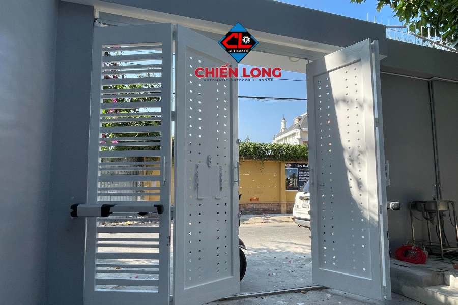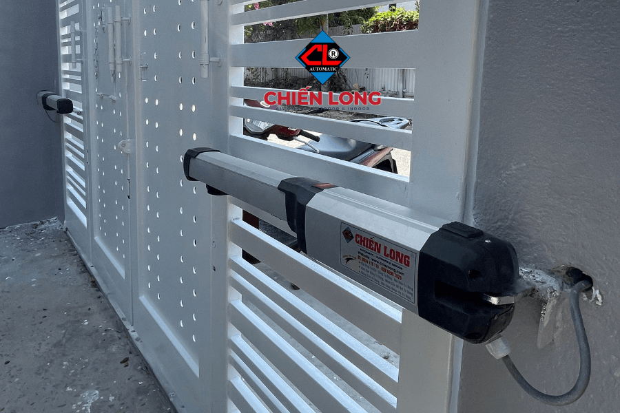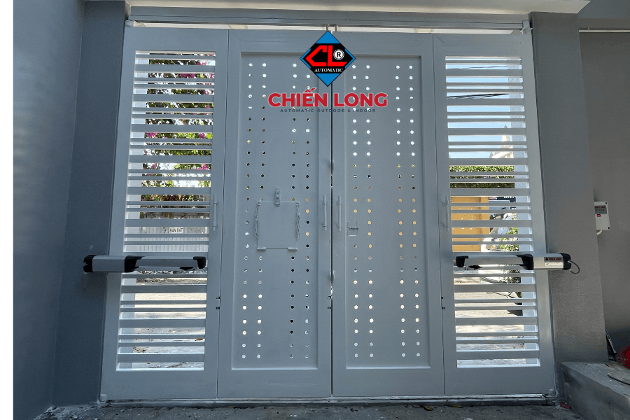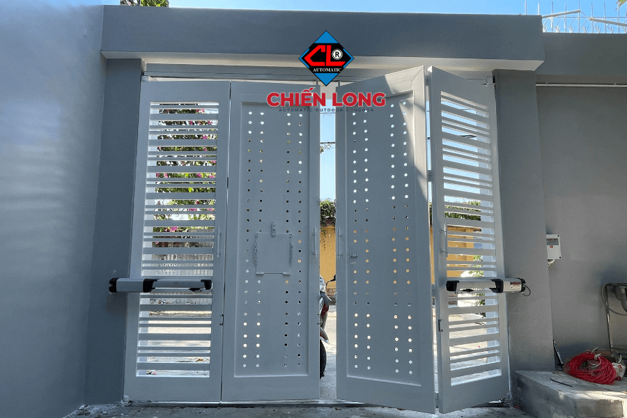 Cổng trình ở Thủ Đức lắp đặt motor cánh tay đòn cổng xếp 4 cánh