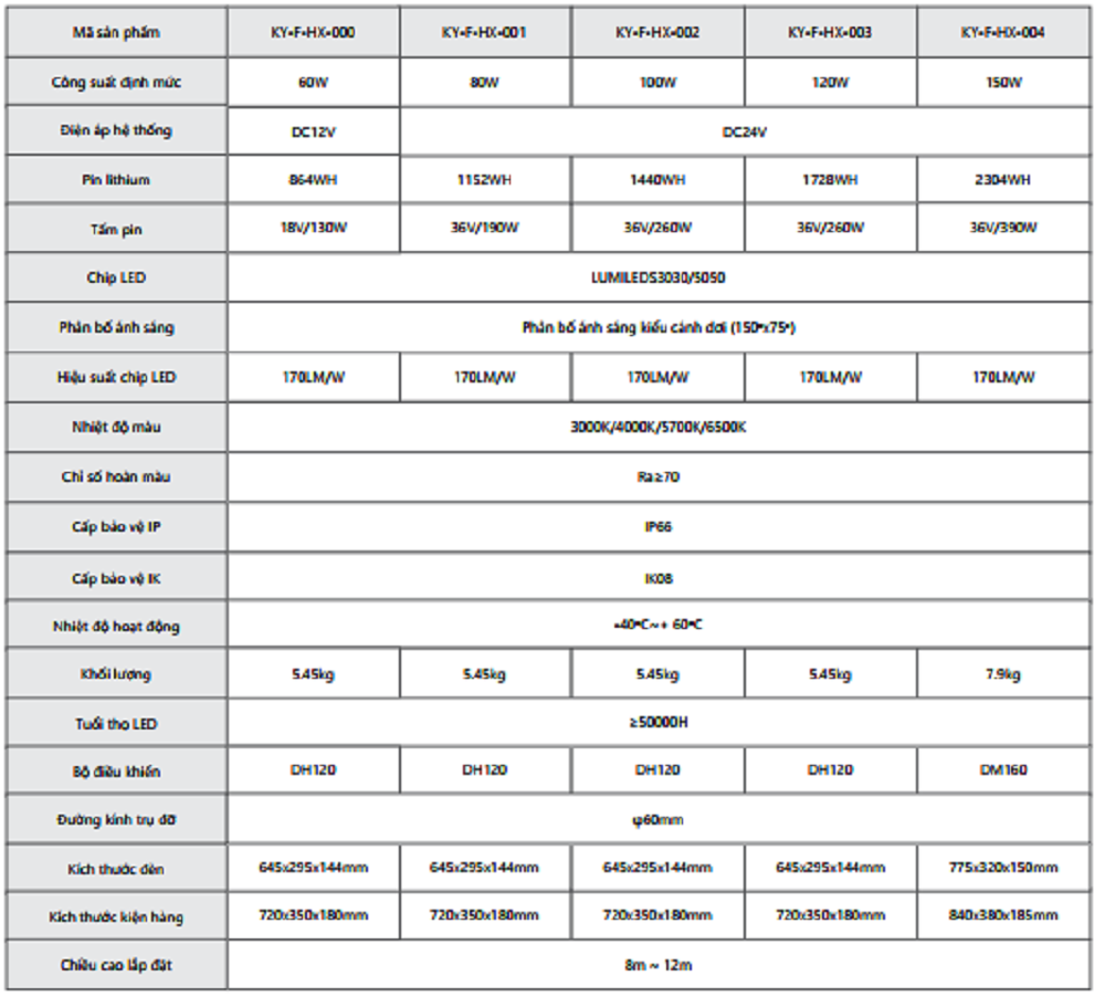 - Smart controller bảo vệ quá áp/dòng và kéo dài thời chiếu sáng khi tình trạng bettery suy yếu ( mưa nhiều ngày)