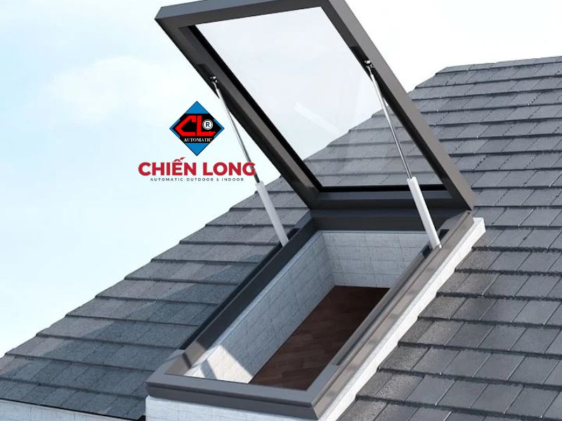 Điểm nổi bật nhất của giếng trời dạng lật là khi mở, tấm mái sẽ lật lên một góc 90 độ, tạo thành một khoảng mở lớn trên mái nhà, giúp tăng khả năng lấy sáng và thông gió tự nhiên khi cần thiết.