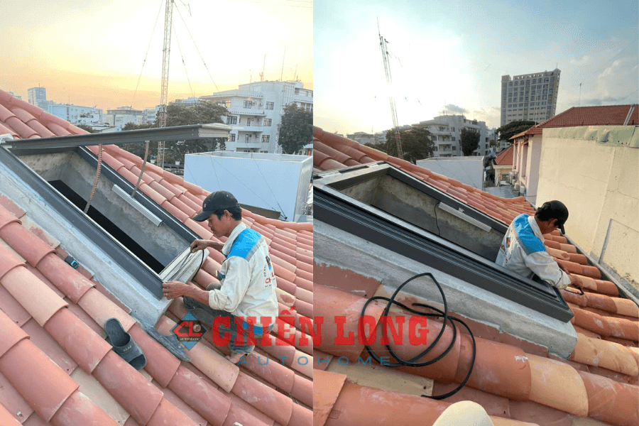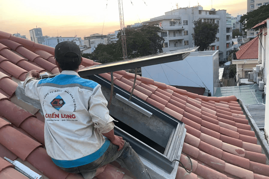 Giếng trời tự động thông minh Lật úp đóng lại khi có trời mưa, điều khiển từ xa qua remote và app điện thoại, Giếng trời được thiết kế bằng hệ khung nhôm và tấm Polycarbonate chịu và đập gấp 200 lần kính, chống UV chống nóng, nó nhẹ hơn kính 1 nửa nên so với kính cường lực, tấm Polycarbonate và khung nhôm được thiết kế đặc biệt bên hon khung sắt 10 lần dễ lắp đặt