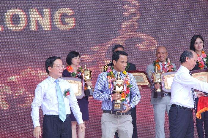 Thứ trưởng Bộ Xây dựng, Trưởng Ban Chỉ đạo Triển lãm VietBuild 2013, ông Nguyễn Trần Nam trao tặng cúp vàng và huy chương vàng chất lượng sản phẩm VIETBUILD 2013 cho Mr.Chiến