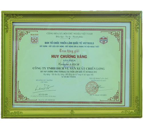 Năm 2013 CHIẾN LONG tự hào nhận cúp vàng sản phẩm chất lượng cao VTOPBUILD tổ chức ở trung tâm triển lãm SECC quận 7.