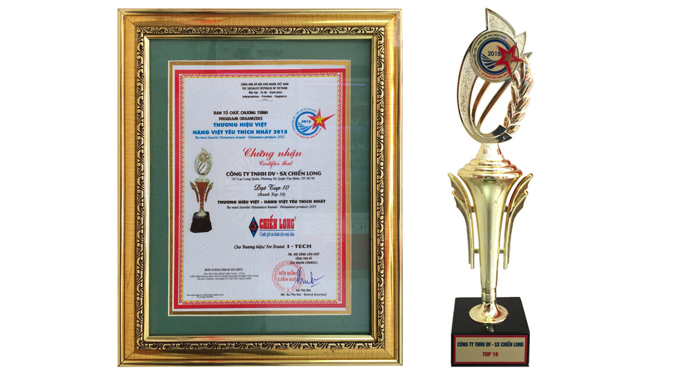 Ngày 28-06-2015, Công Ty CHIẾN LONG tự hào được nhận giải “TOP 10Thương hiệu Việt - hàng Việt yêu thích nhất năm 2015” do LIÊN HIỆP KHÓA HỌC PHÁT TRIỂN DOANH NGHIỆP VIỆT NAM tổ chức đã diễn ra tại Nhà Hát Thành Phố, Thành phố Hồ Chí Minh.