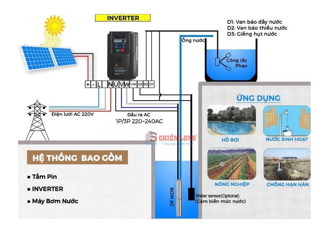Hiện Solar Chiến Long có 2 giải pháp chính về hệ thống bơm nước từ nguồn điện mặt trời. Người dùng có thể tùy chọn: