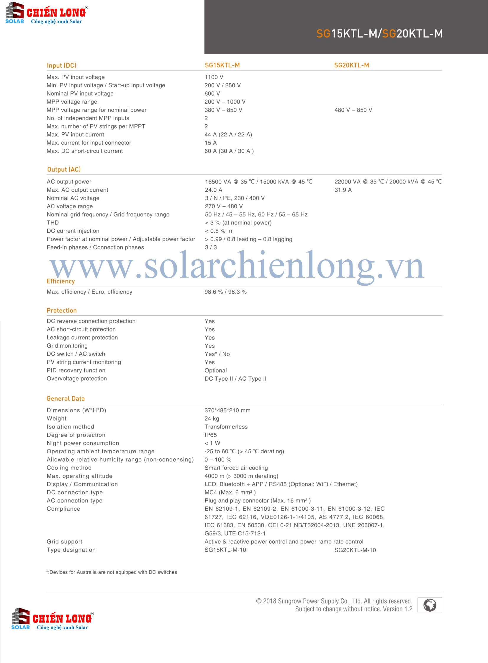 2. Thông số kỹ thuật Inverter Sungrow SG20KTL-M
