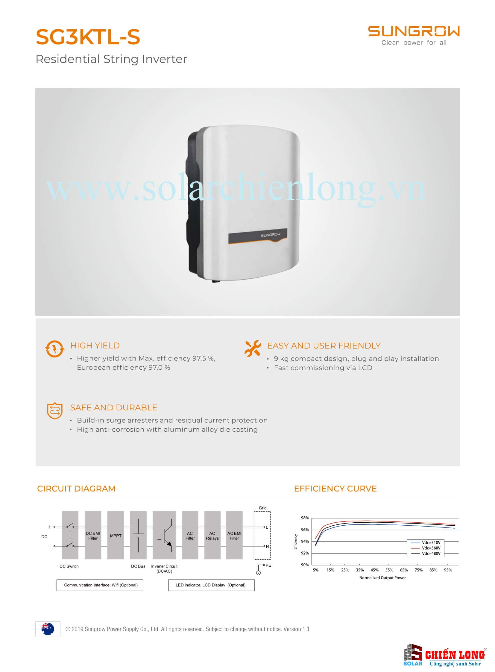 1.Inverter Sungrow SG3KTL-S | Công suất 3kW, 1 pha (2 DC input, 1 MPPT)