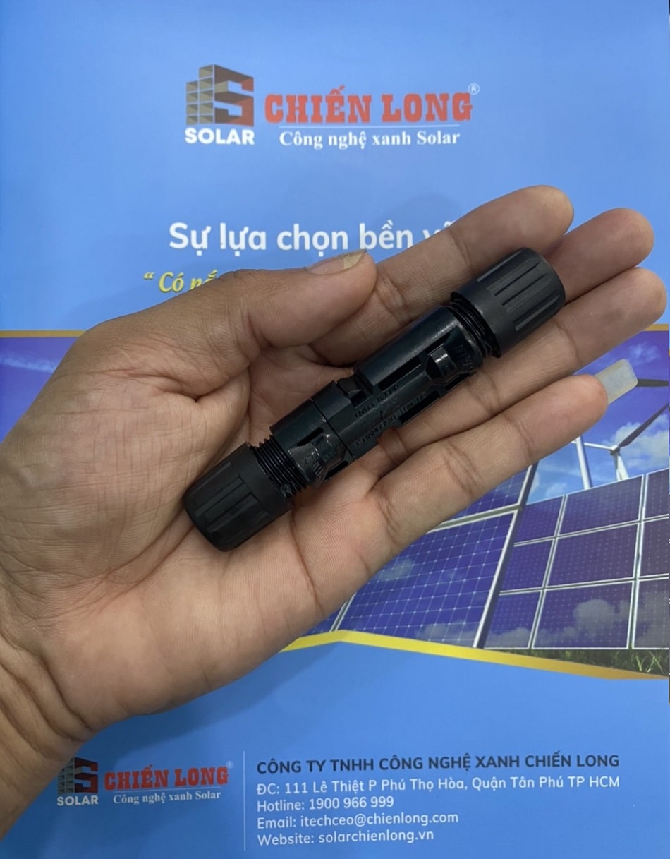 Jack kết nối MC4 solar connector (đầu nối MC4) chuẩn ip66 kết nối được sử dụng phổ biến cho thiết bị Solar. Jack MC4 đảm bảo an toàn điện, tránh rò rỉ, là thiết bị đảm bảo hệ thống điện mặt trời bền lâu. Giắc MC4 thường dùng đấu nối 2 tấm pin mặt trời. MC4 cũng là kết nối mặc định, có sẵn của Inverter hòa lưới và tấm pin năng lượng mặt trời