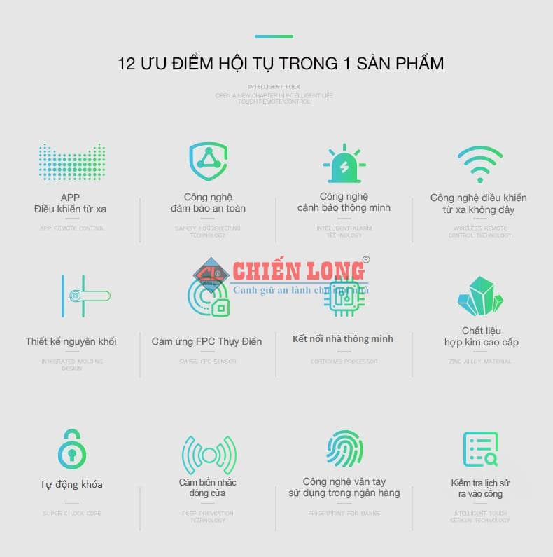 - Công nghệ FPC khi mở khóa Nhận diện vân tay, Định dạng vân tay, Nhiệt độ ngón tay khóa cổng thông minh được tích hợp 3 lớp bảo mật chống sao chép vân tay , Công ty Chiến Long phát triển riêng cho hệ thống khóa cổng vân tay ngoài mục đích bảo vệ an toàn cho gia chủ nhà và bảo đảm an ninh chặt chẽ bảo mật tối đa.