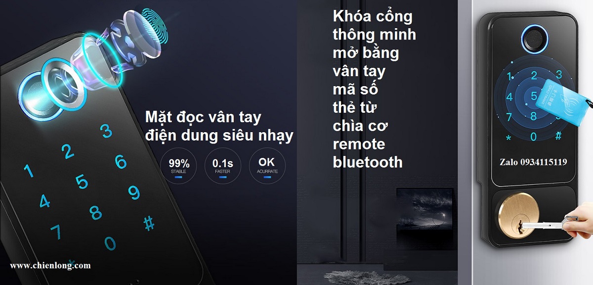 Khóa cổng mở bằng vân tay, thẻ từ, mã số hiện nay ngày càng phổ biến và được sự tin tưởng lựa chọn của rất nhiều khách hàng phù hợp cho rất nhiều loại cửa cổng như: cửa gỗ, cửa gang đúc, cửa sắt chống cháy, cửa sắt hộp, cửa nhôm…