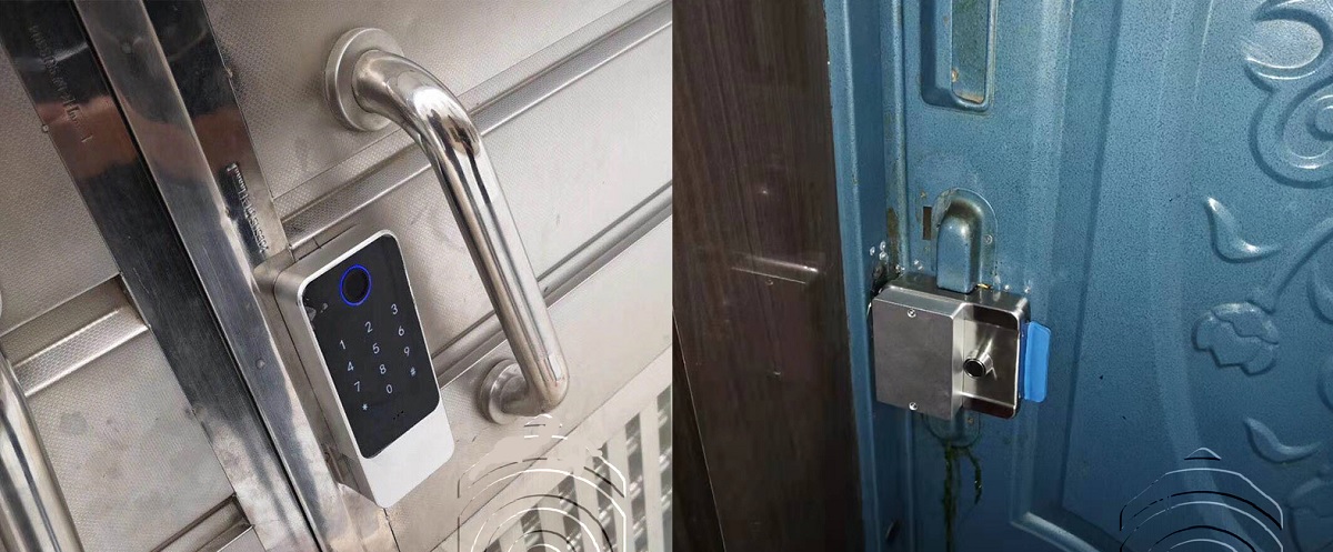 Đối với những ổ khóa cửa cổng dùng bằng pin khi lắp ngoài trời thì cần phải có hộp bảo vệ và cửa phải kín từ bên ngoài không thò tay vào trong được. Những ổ khóa này chỉ có thể khóa chiều đi vào mà không thẻ khóa chiều đi ra.