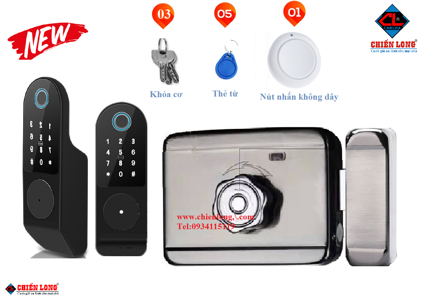 - Mở khóa bằng 100 vân tay, 300 thẻ từ, 1 mã số, 2 chìa khóa cơ từ bên ngoài.