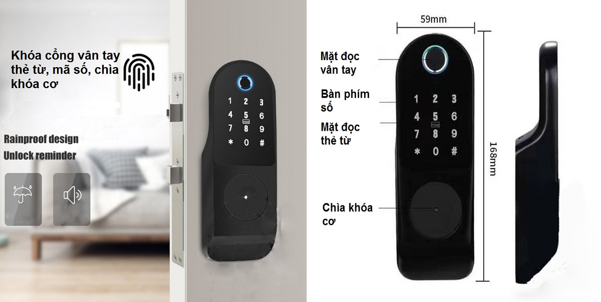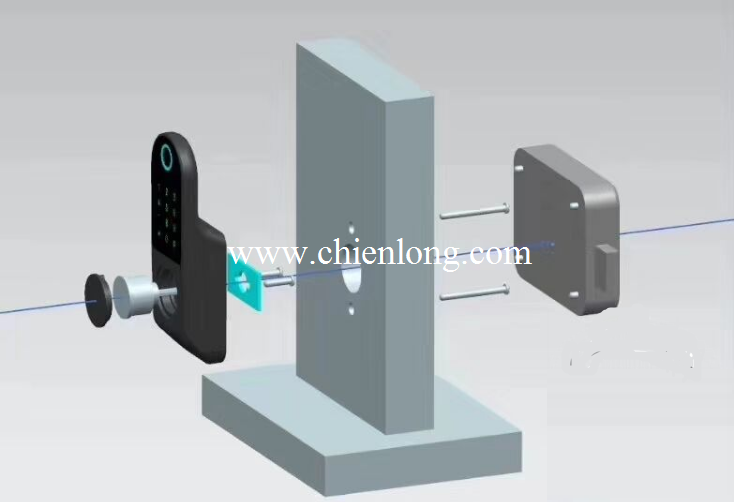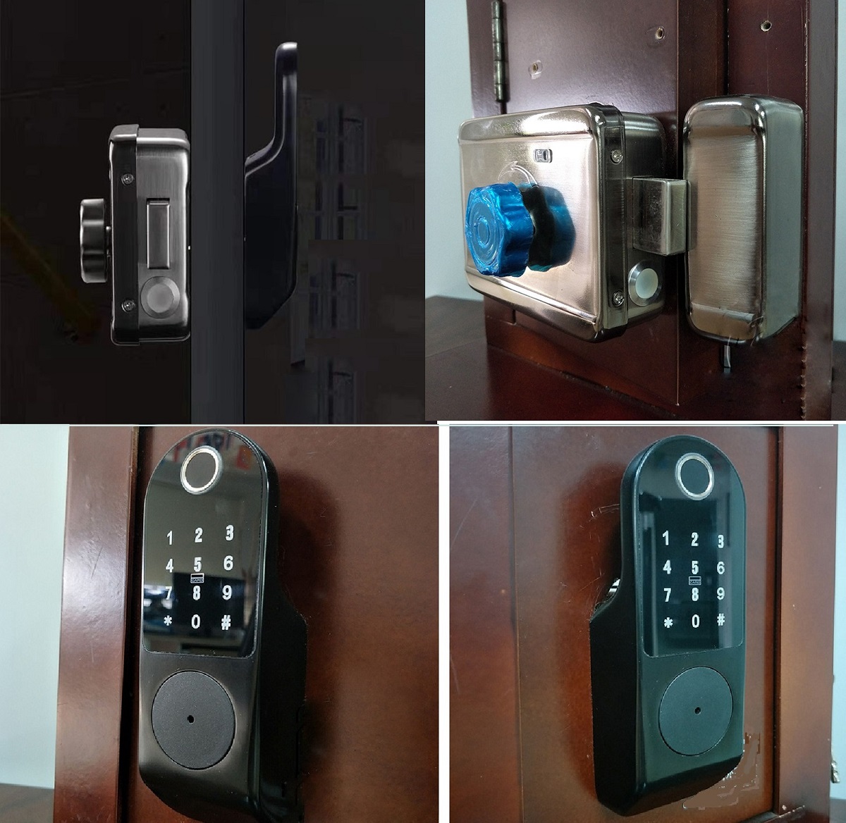 Ổ khóa thông minh này là loại ổ khóa tích hợp chung lại thành một khối, không tác rời. Mình chỉ việc khoan cửa lắp lên là xong.