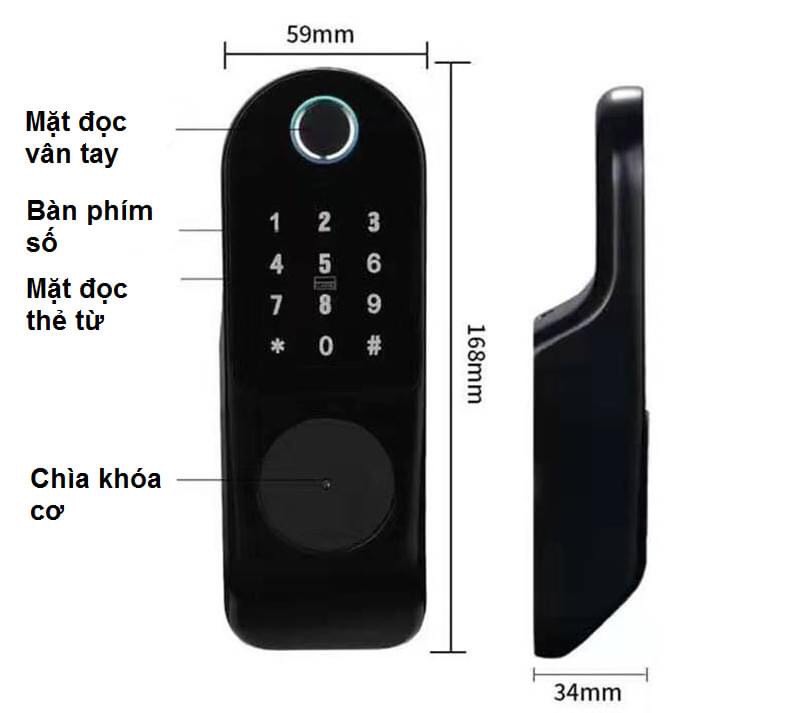 - Dung lượng: 100 vân tay, 100 thẻ, 100 mật mã, có thể tích hợp được 12 remote