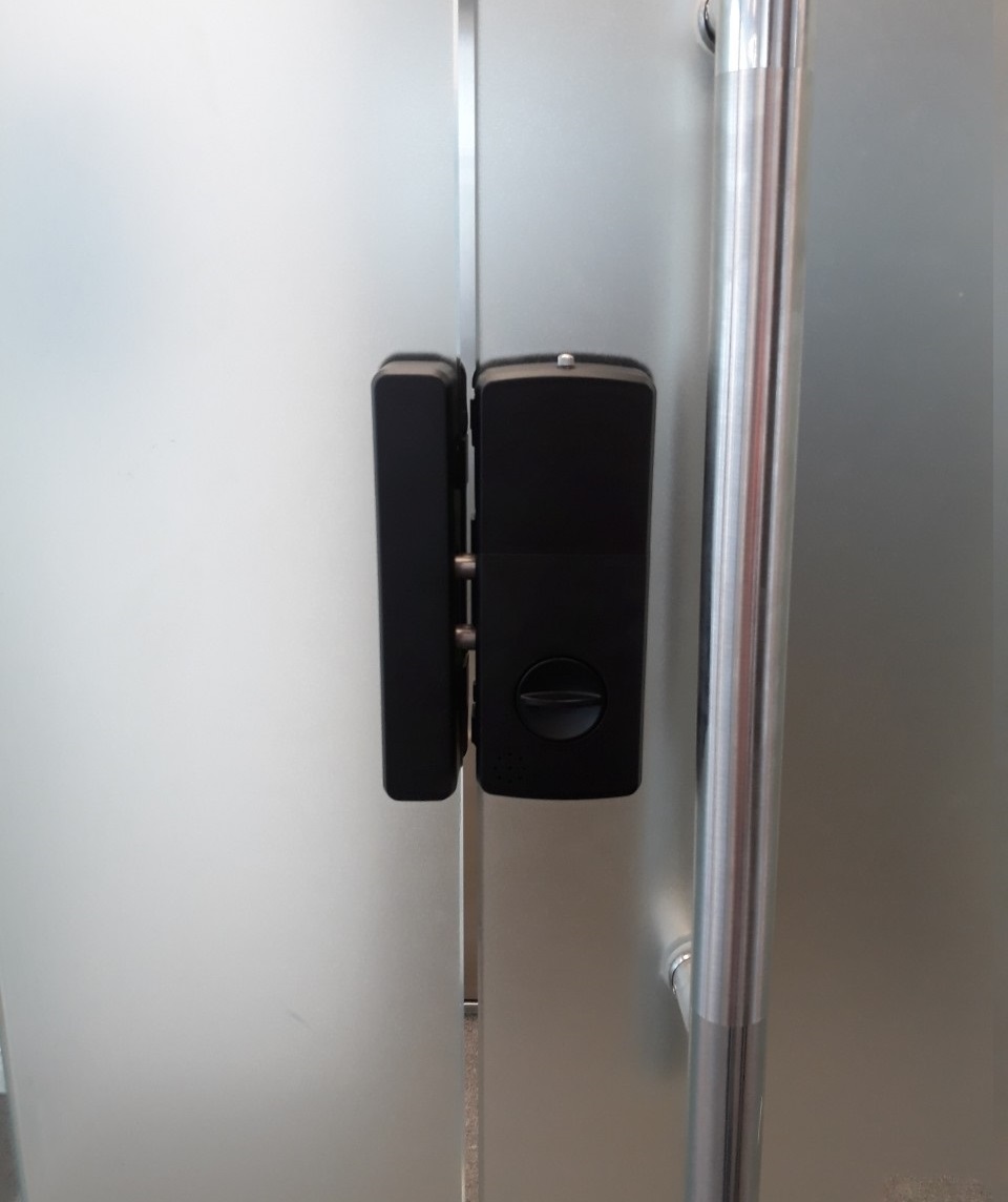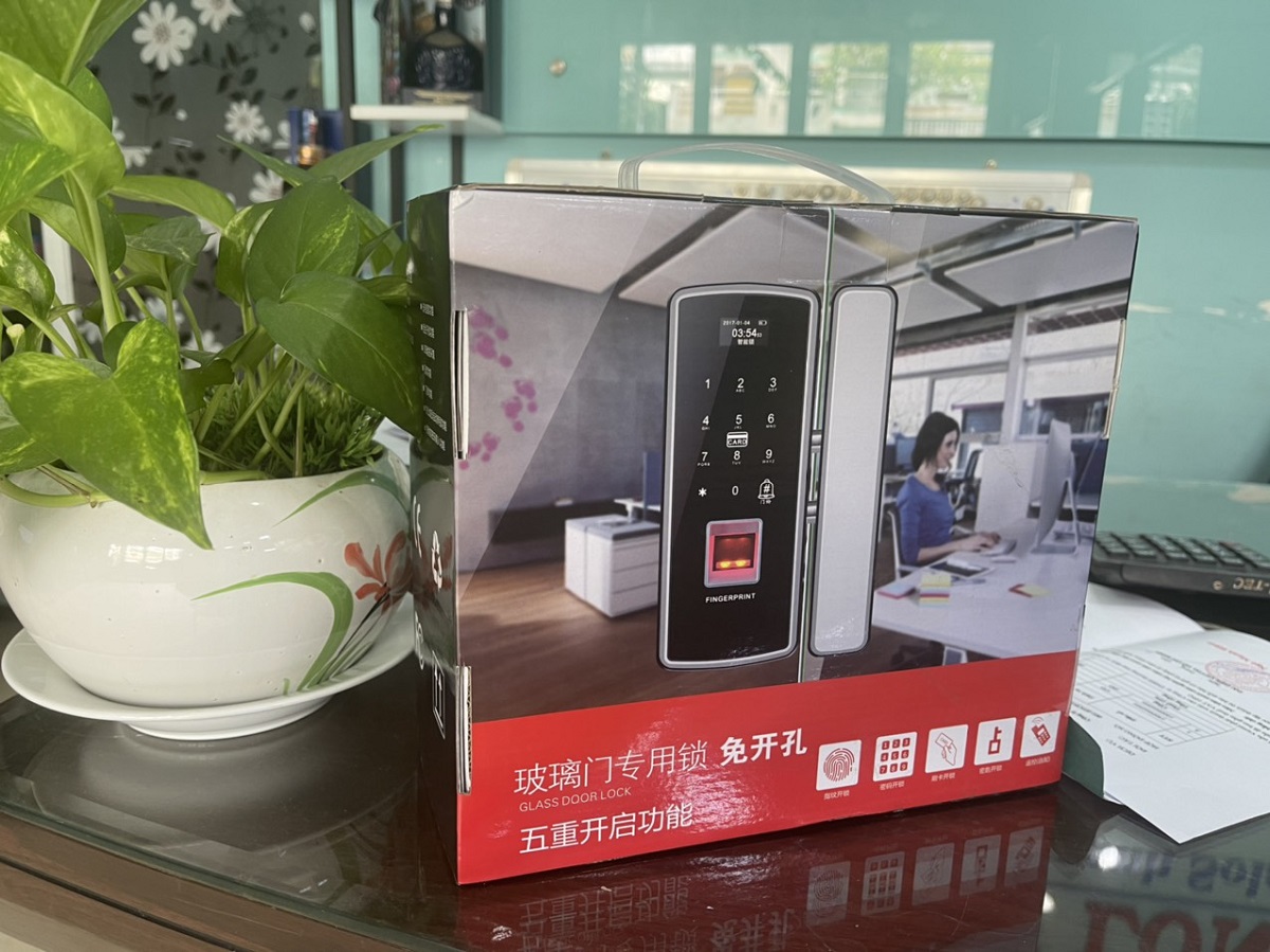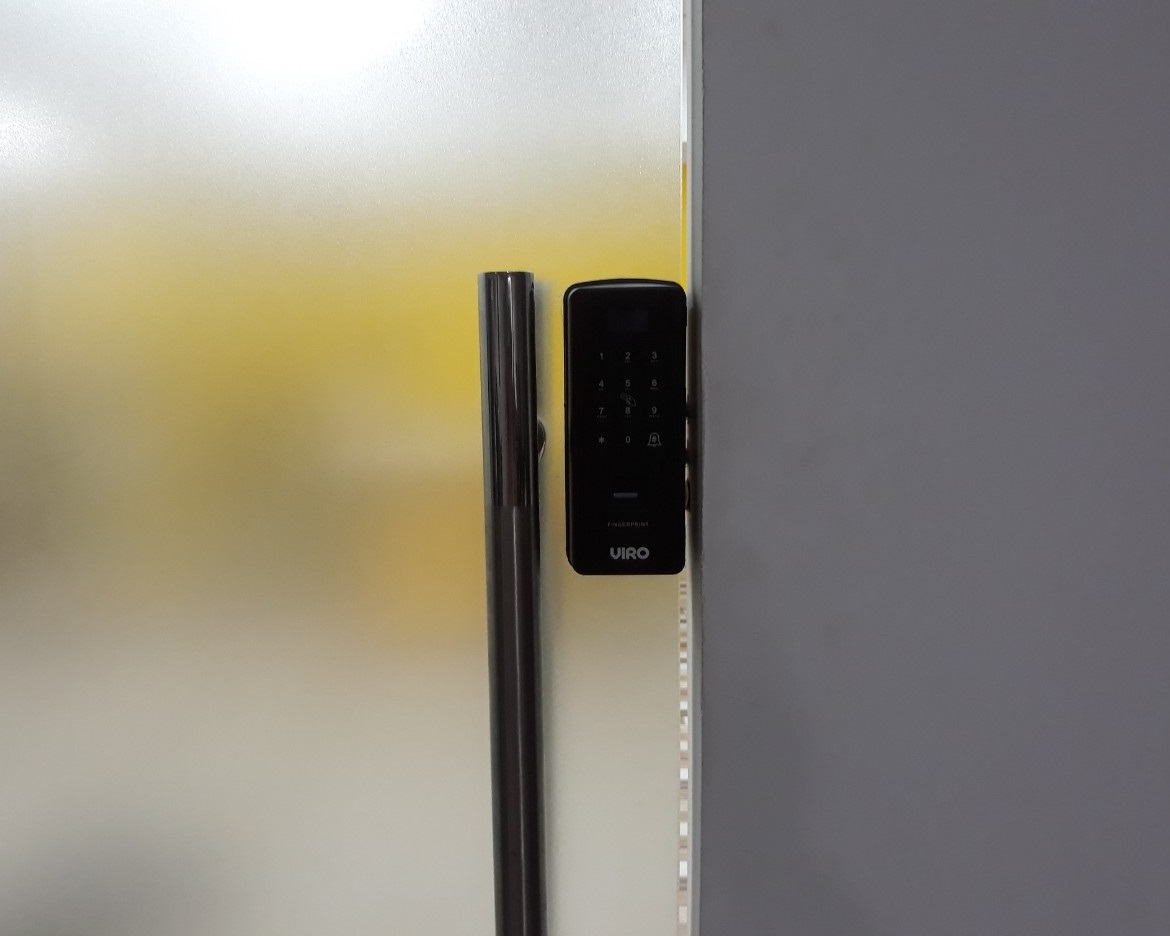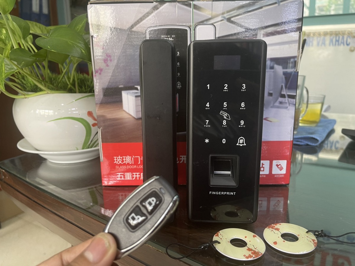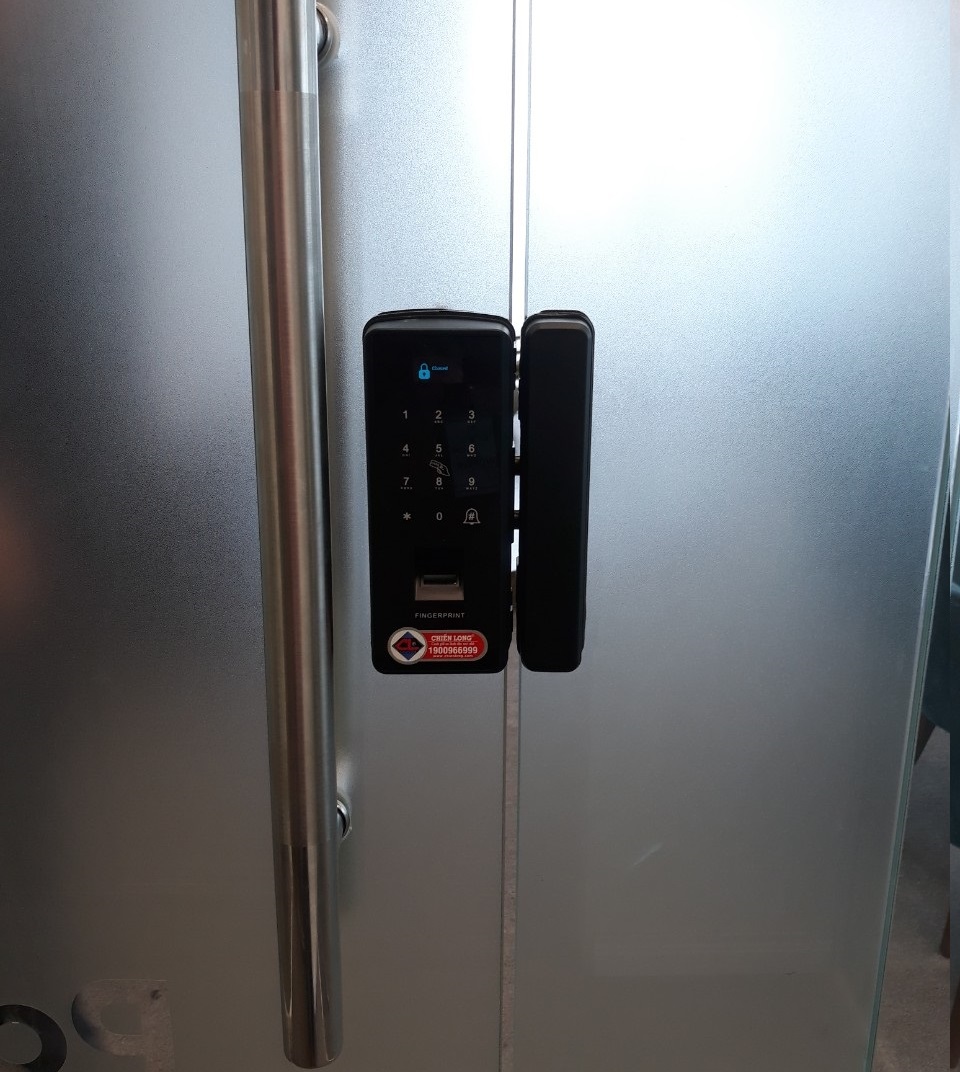 Hình ảnh lắp đặt Khóa cửa kính bằng vân tay smartlock 3in1 vr-e10a