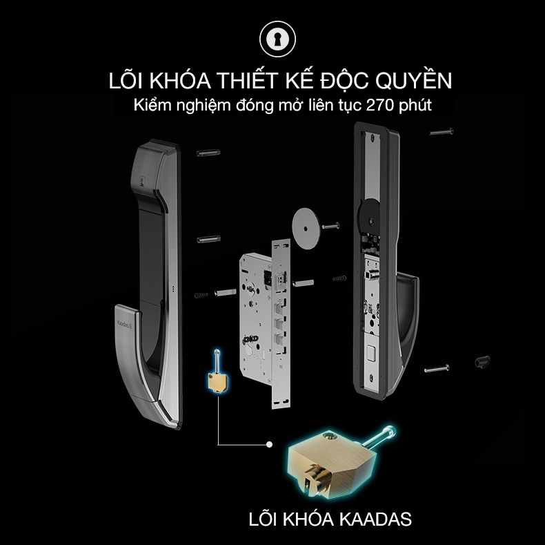 Chìa cơ của Kaadas vô cùng chắc chắn, thiết kế độc quyền nên không thể làm giả. Chìa cơ được kiểm nghiệm đóng mở liên tục 270 phút và không xảy ra bất cứ hiện tượng hỏng hóc nào. Tuy nhiên chìa cơ chỉ là phương án dự phòng khi hết pin đột ngột. Đa số người dùng sẽ không phải sử dụng chìa cơ để mở cửa.