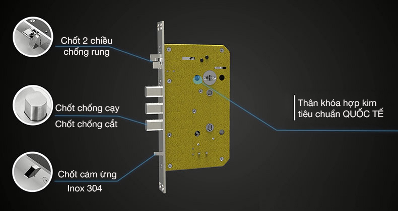 • Phương thức mở cửa: Vân tay, Mã số, Thẻ từ, Chìa cơ