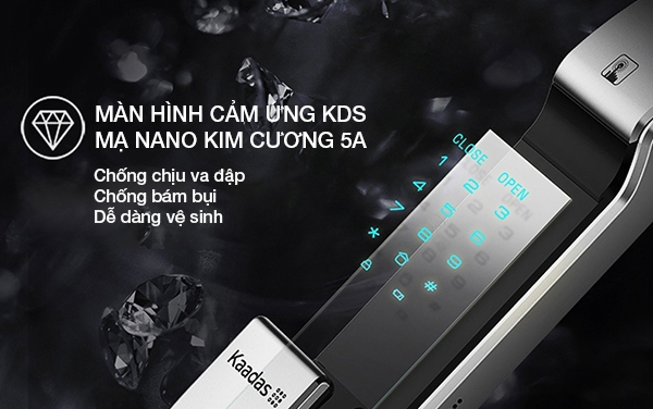 Các thương hiệu khác thường sử dụng mặt nhựa nên dễ bị xước cũng như khó vệ sinh. Độ chịu lực chắc chắn sẽ không thể bằng kính cường lực. Kaadas K7 sử dụng màn hình cảm ứng KDS cực kỳ chắc chắn. Chống chịu va đập tốt, dễ dàng vệ sinh nếu bám bụi