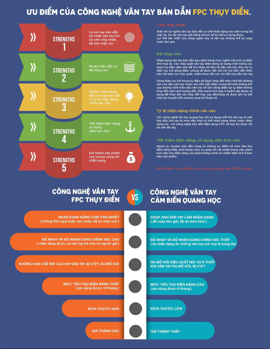 – Sử dụng Công nghệ vân tay FPC Thụy Điển được nhận dạng bằng vân tay, nhiệt độ, hình dạng nên không thể làm giả, không thể sao chép.