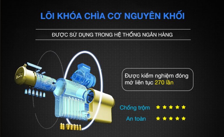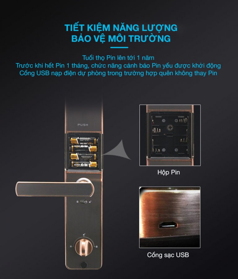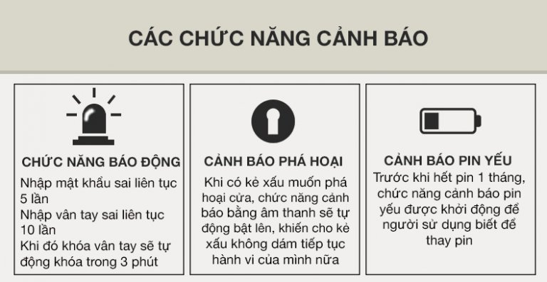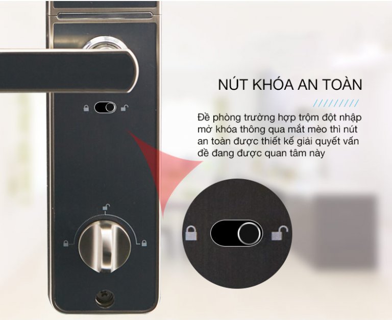 - Phương thức mở cửa: Vân tay, Mã số, Thẻ từ, Chìa cơ