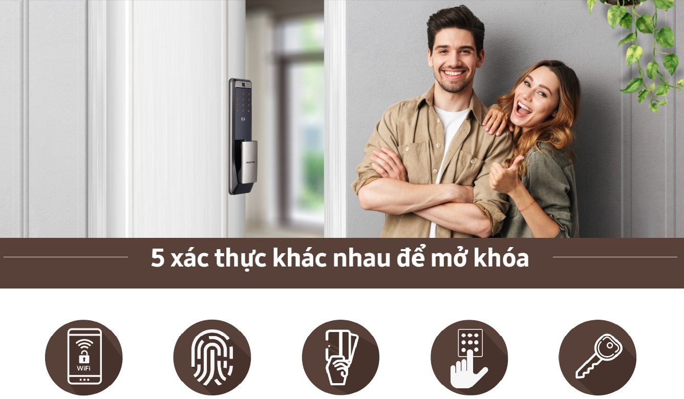 Dễ dàng & nhanh chóng mở Khóa cửa thông minh bằng vân tay, thẻ từ, mã số, kết nối wifi mở khóa trên App từ xa, chìa khóa cơ dự phòng