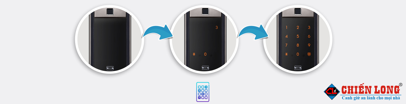 - Màn hình cảm ứng, hiển thị trạng thái: ‘Locked’. ‘Unlocked’ khi đóng mở cửa, trực quan cho người sử dụng.