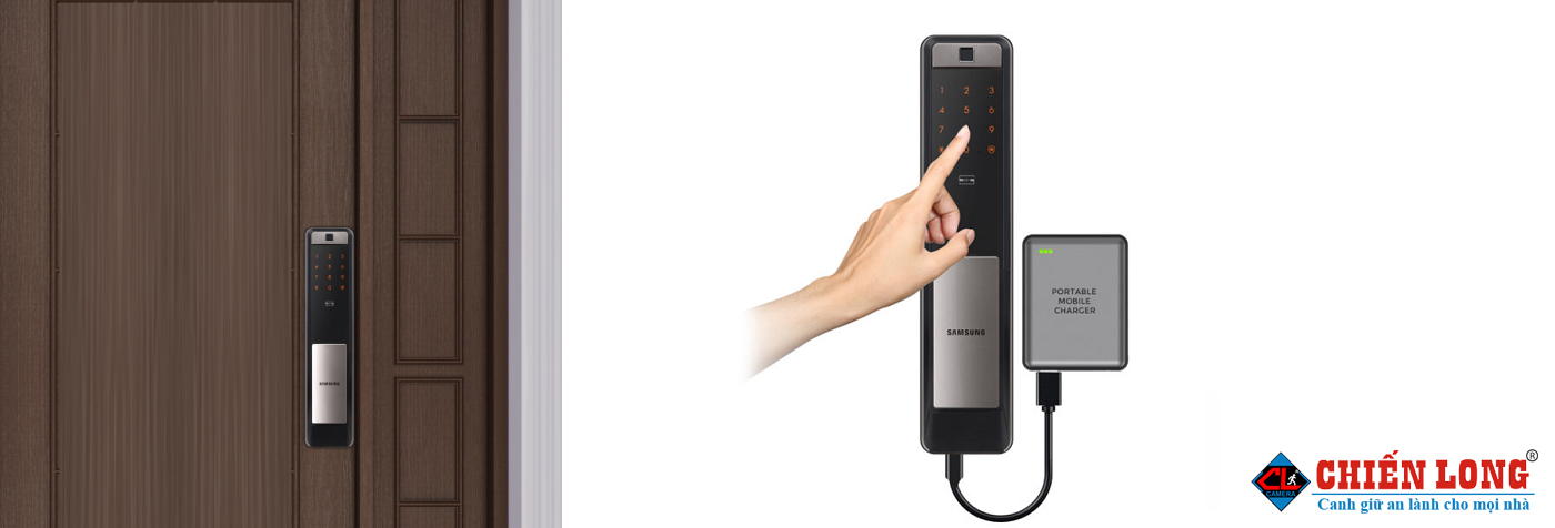 Để mở cửa, kết nối cáp Micro USB 5-pin từ bộ sạc di động điện thoại thông minh với đầu vào nguồn Micro USB ở dưới cùng của thân ngoài, sau đó xác thực dấu vân tay hoặc nhập mật khẩu mở cửa váo nhà