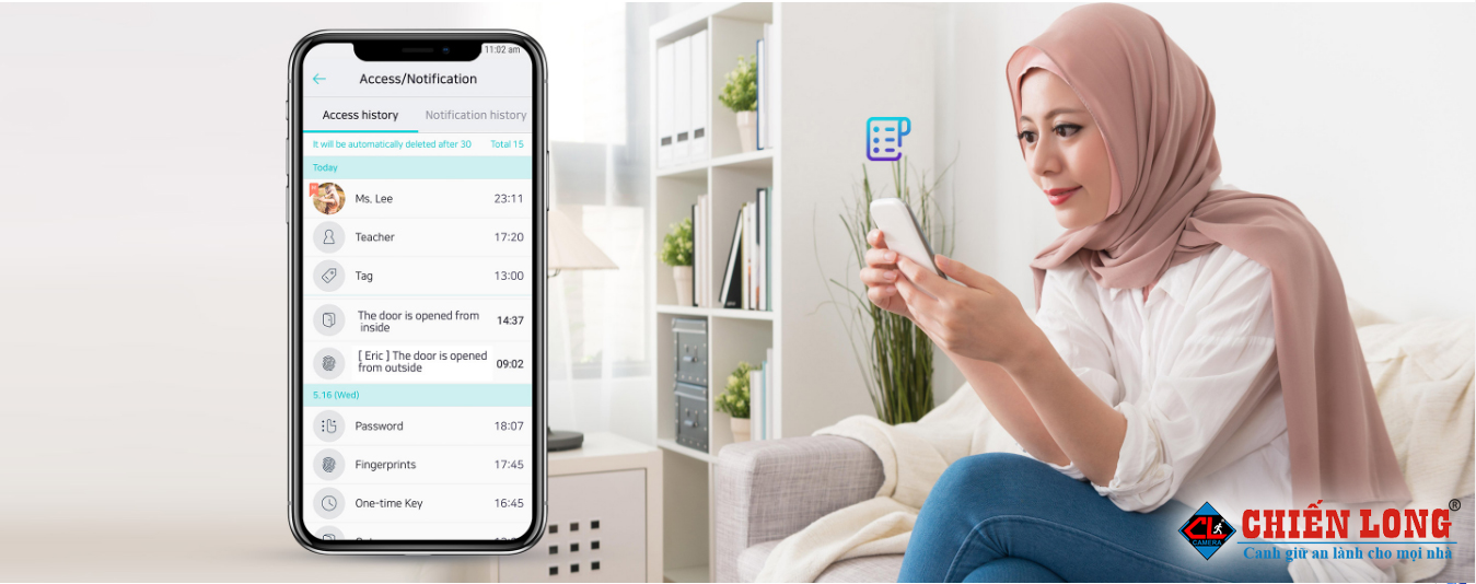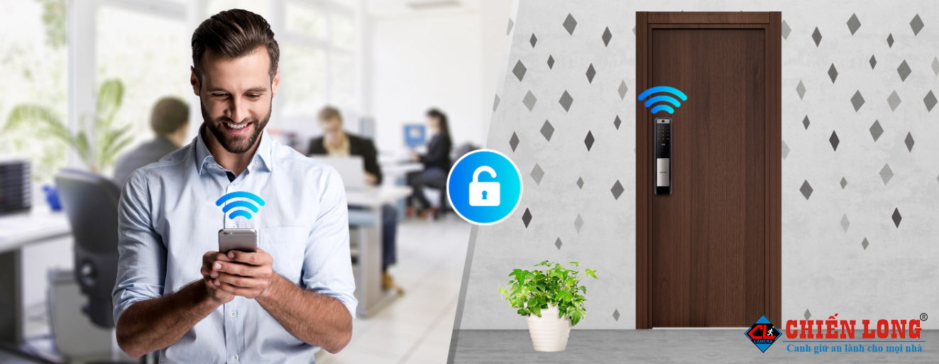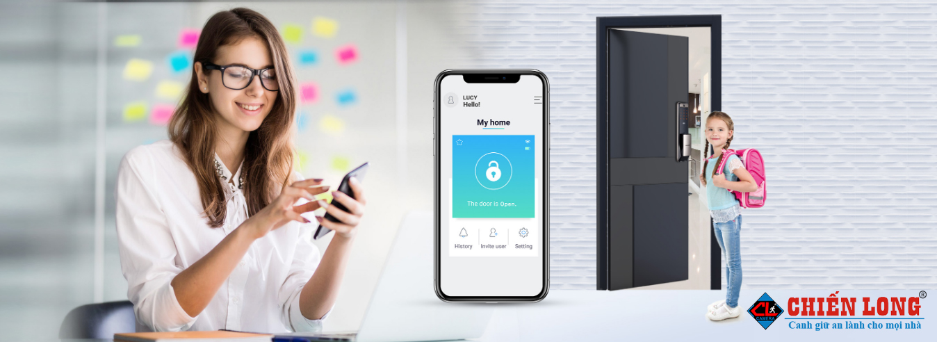 Điện thoại thông minh của bạn là chìa khóa cửa. Đơn giản và an toàn mở khóa cửa với điện thoại thông minh của bạn từ bất cứ đâu. bạn sẽ nhận được tin nhắn khi người thân của bạn về nhà