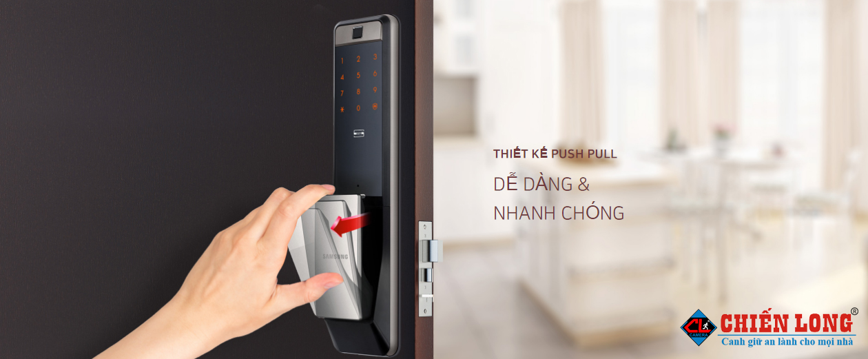Khóa cửa kết nối Smartphone SAMSUNG SHS-DP728AG thiết kế dạng đẩy/ kéo tiện lợi nhất khi đóng mở cửa.