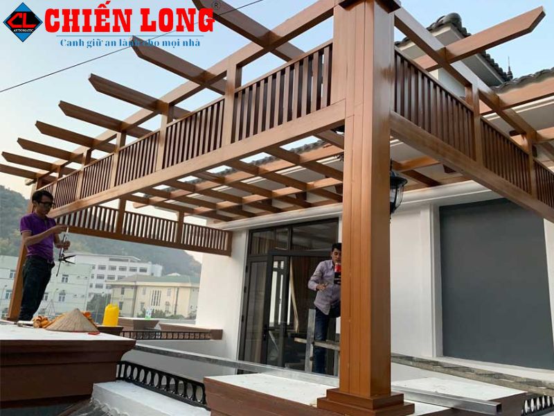 - Vật liệu thi công khung lam ốp nhựa giả gỗ ngoài trời bảo hành 10 năm chất lượng.