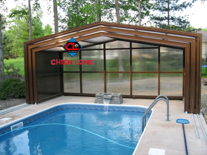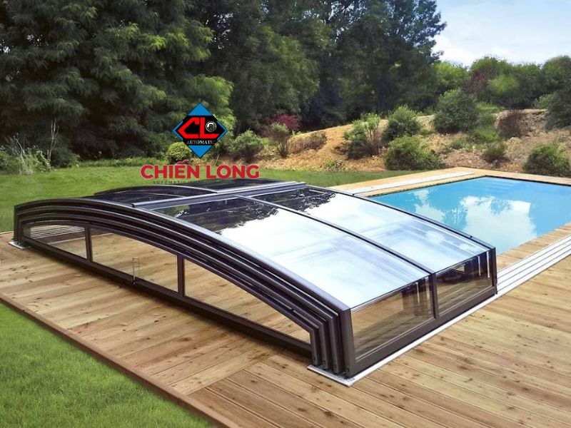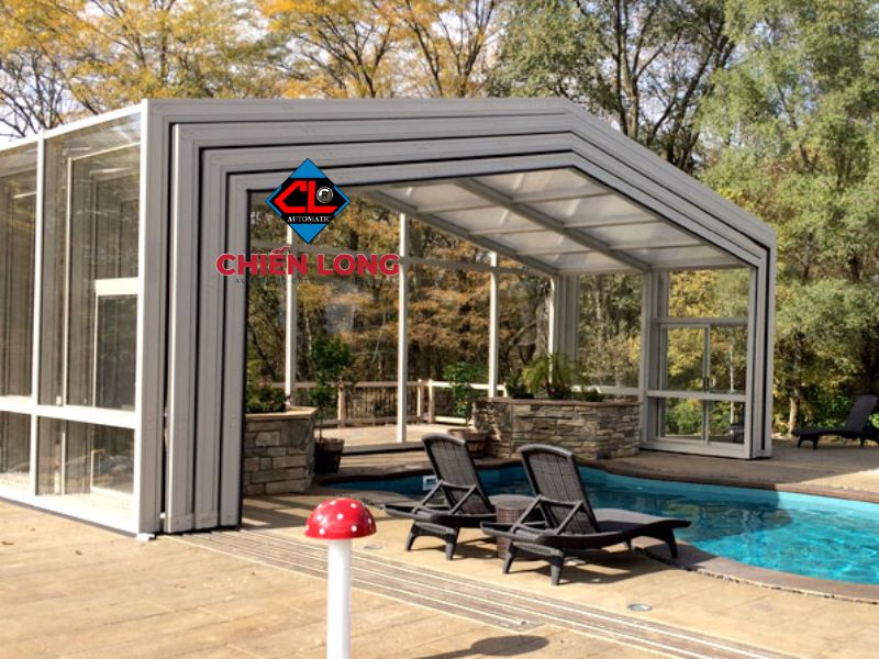 Các loại mái che poly xếp lớp trượt che hồ bơi tự động